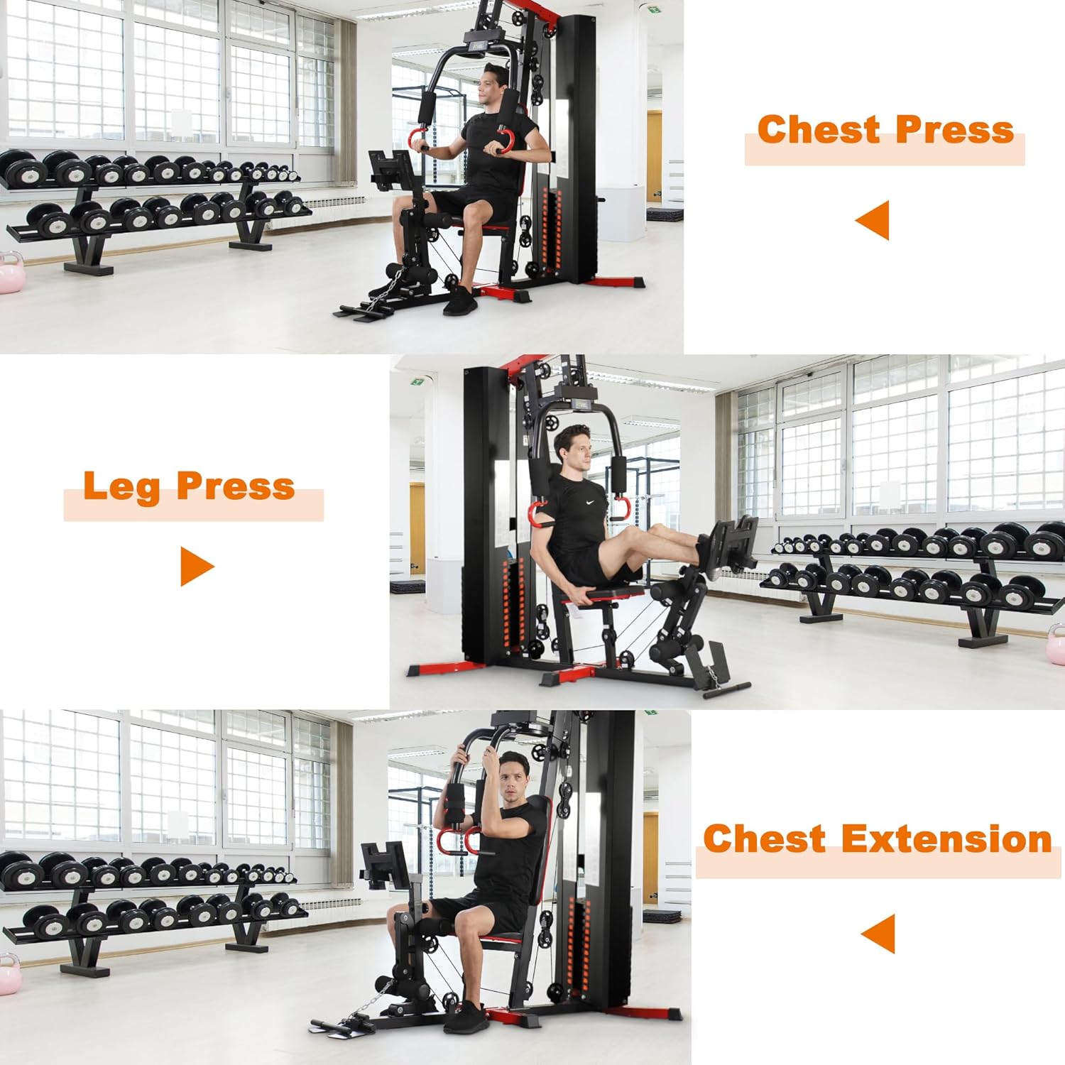 【Triple-Configuration Flexibility】 Choose from three professional setups: 122.5LBS standard weight stack, 122.5LBS with leg press station, or 160LBS professional package with enhanced leg press. All feature vinyl-coated weight plates and precision pin selection for seamless weight adjustment at any fitness level
