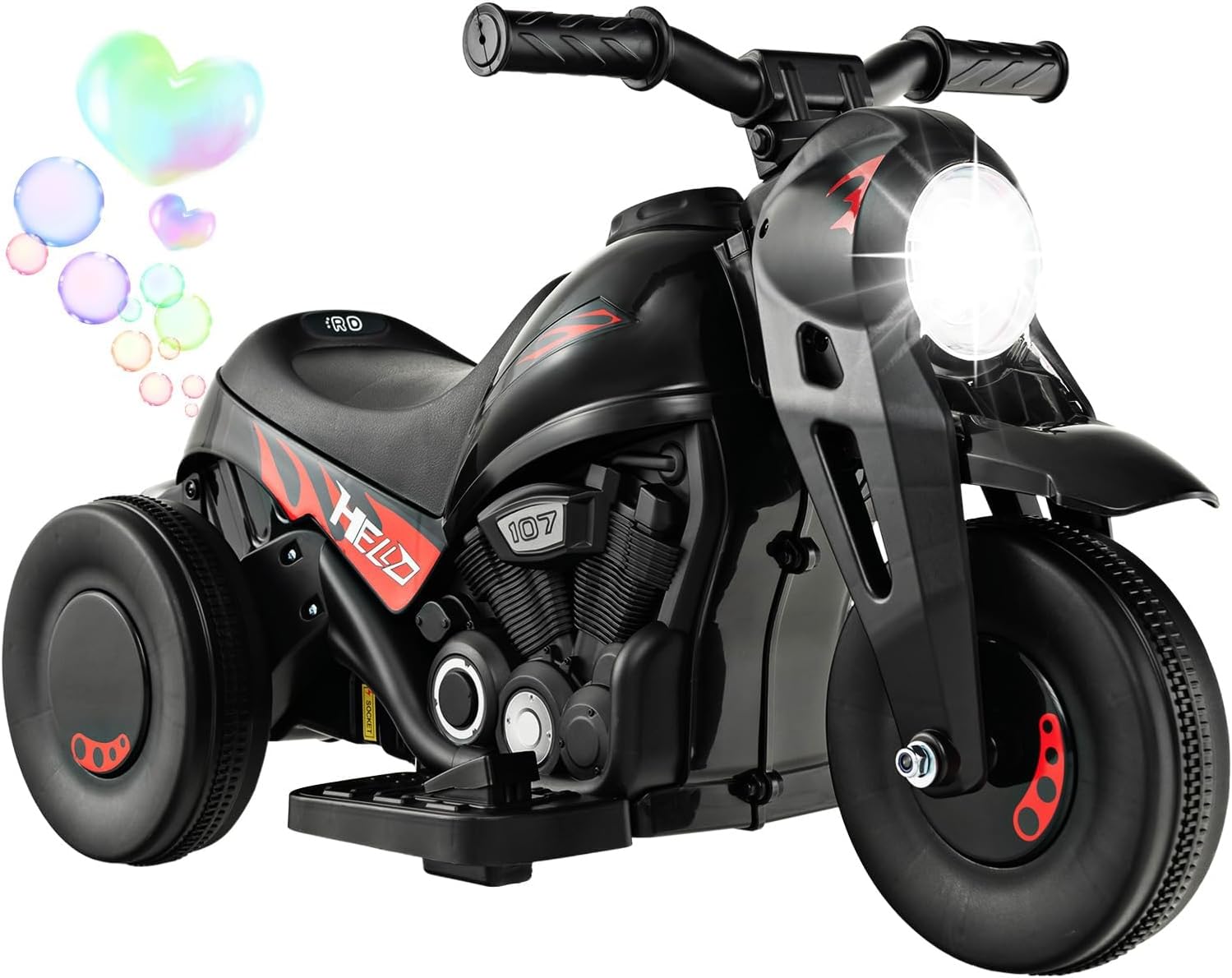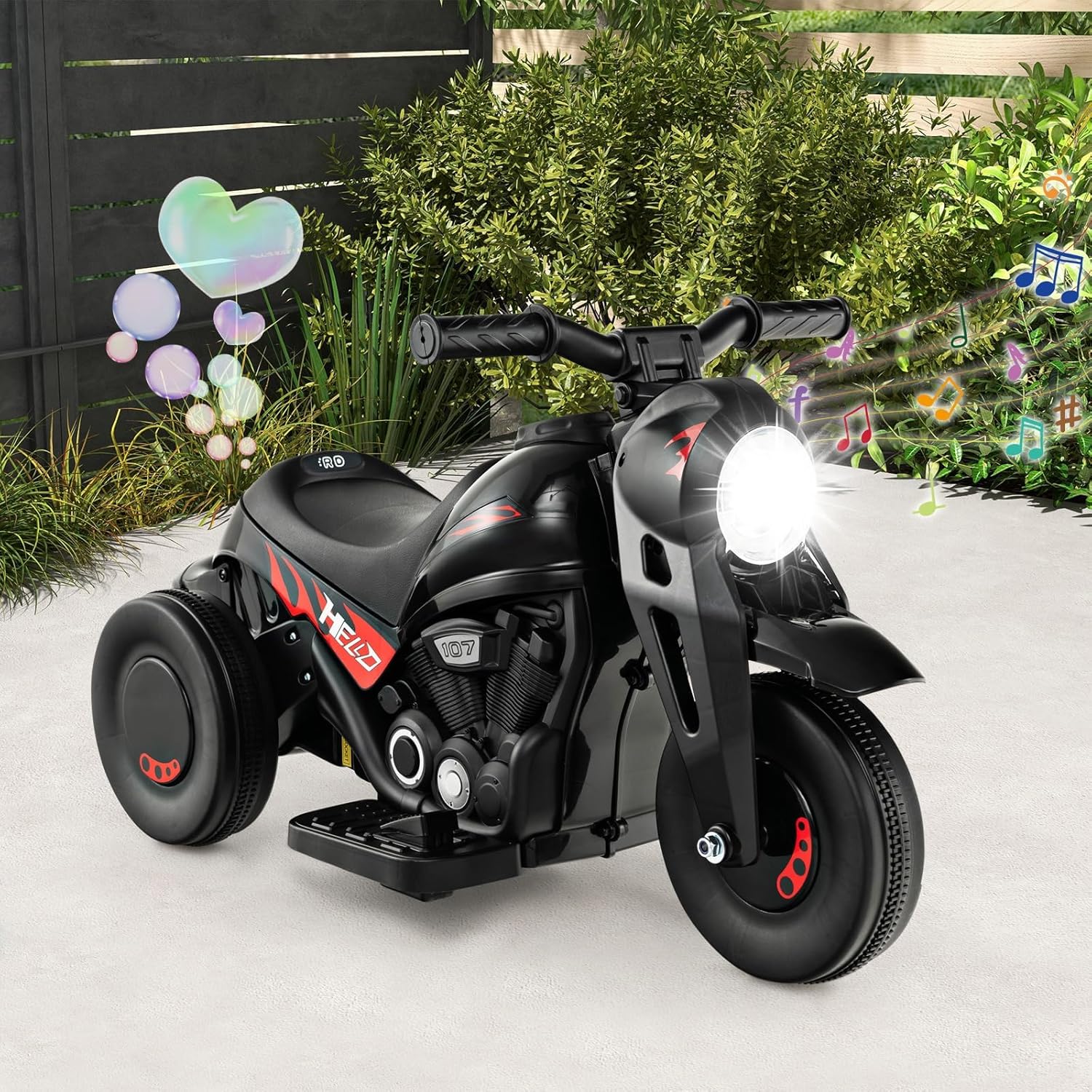 Costzon Kids Motorcycle, 6V Battery Powered Ride on Motorcycle with Bubble Maker, Music, LED Headlight, Forward & Backward, 3 Wheels Electric Motorcycle for Kids, Gift for Boys & Girls (Dark)