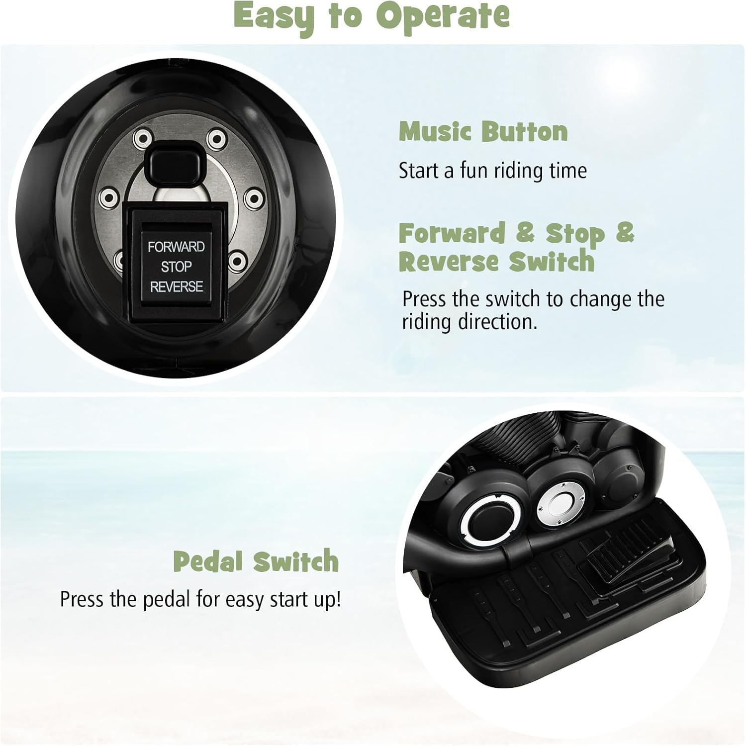 Easy to Operate: Enjoy the great riding experience with easy operation. Simply Press the pedal for easy start up and press the switch to change the riding direction, your kids can start a fun riding time with direction steering function.