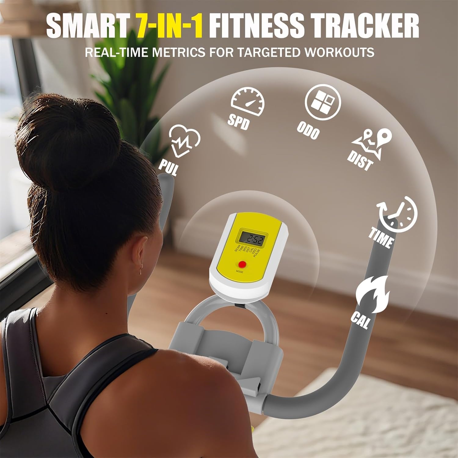 LCD DISPLAY: Monitor tracks your exercise metrics including pulse, speed, distance, time, and calories burned while cycling