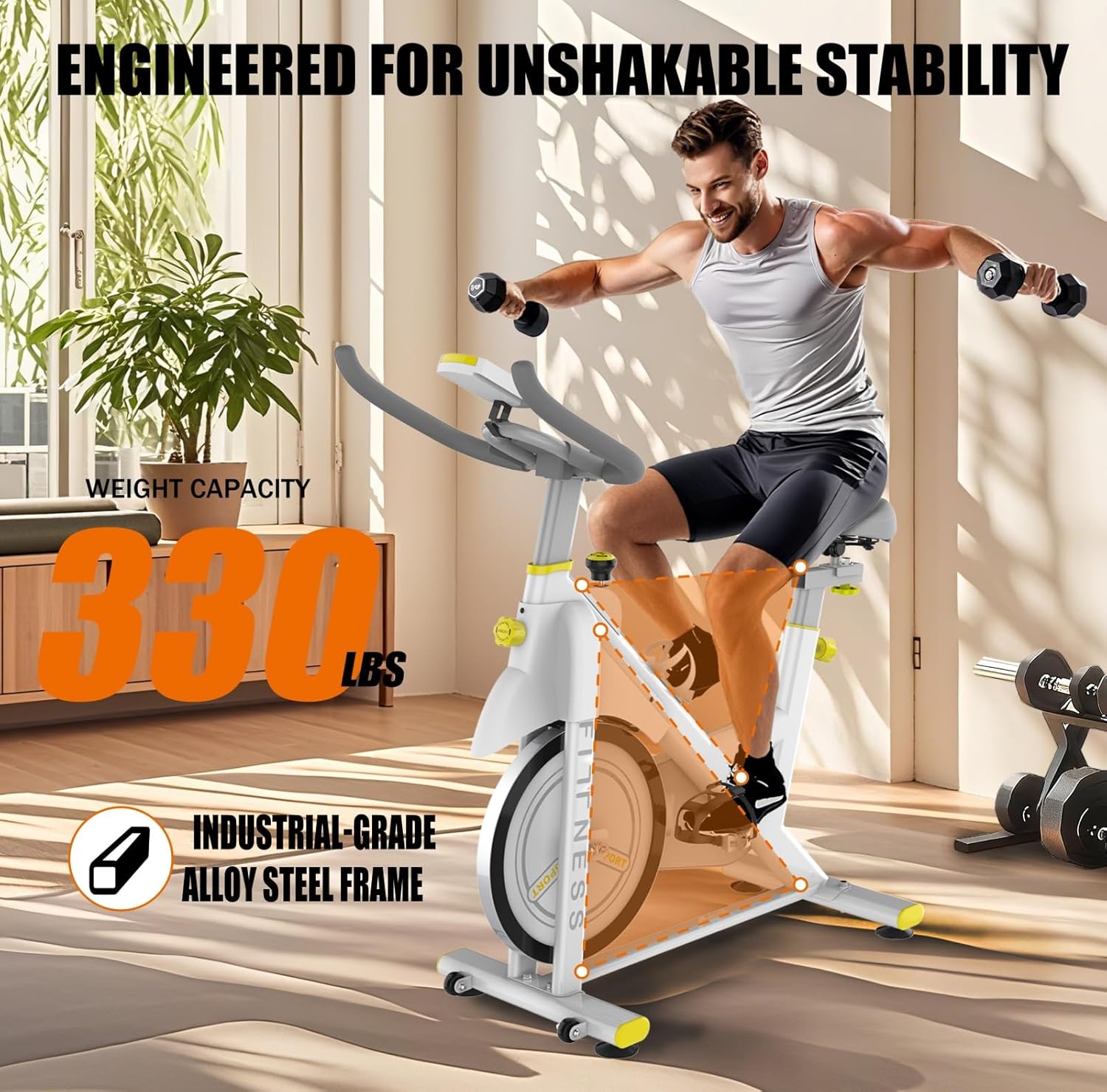 STURDY CONSTRUCTION: Heavy-duty steel frame with 30 lbs flywheel provides stability and smooth riding experience, supporting up to 330 lbs weight capacity