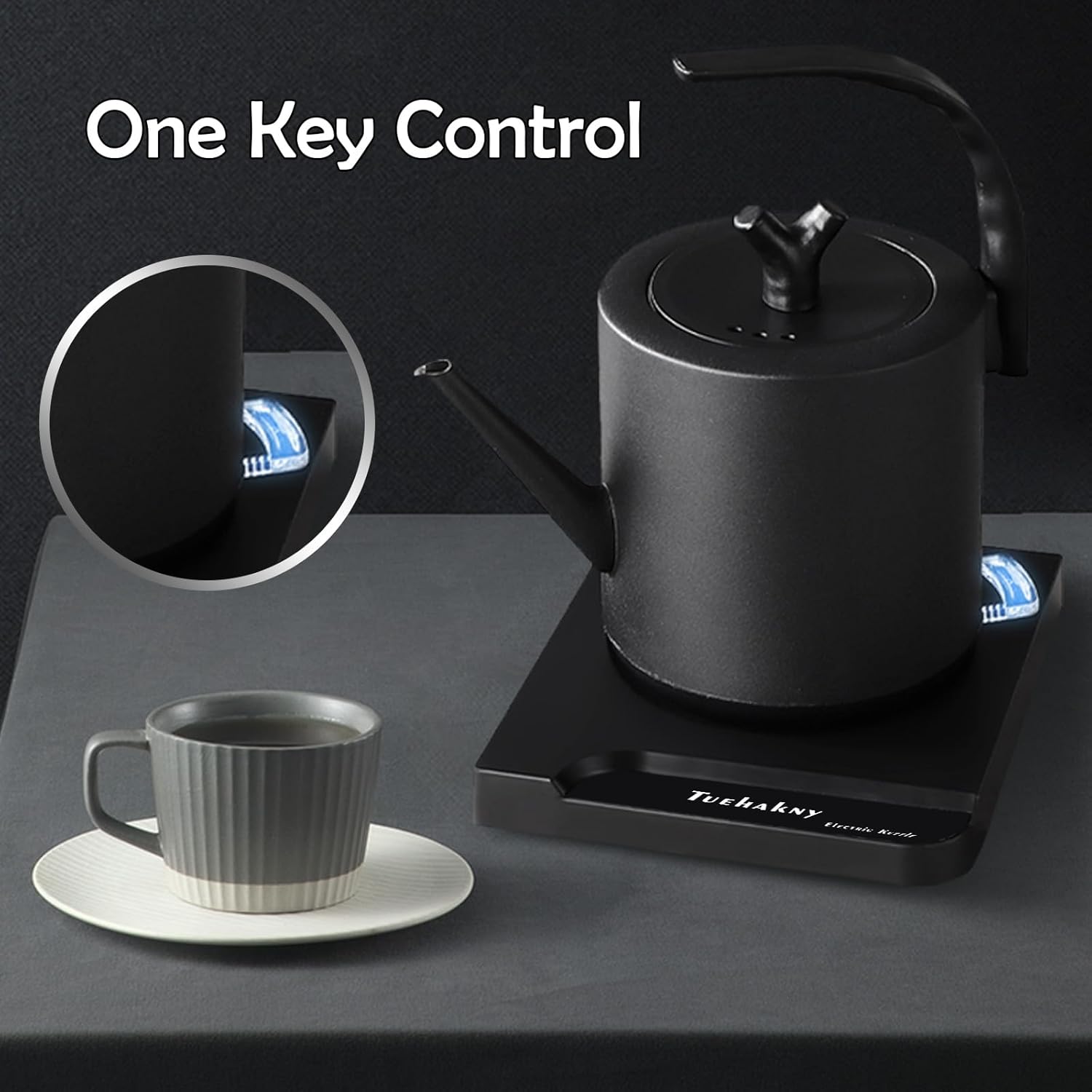 【Precise Pouring】This gooseneck electric kettle is designed for precise pouring, with a strong and precise water flow, especially suitable for hand brewing coffee or tea ceremony. The handle is designed to be comfortable and easy to hold at any angle. Hot water flows smoothly and cleanly from the spout, ensuring that you can direct the water precisely where you need it.