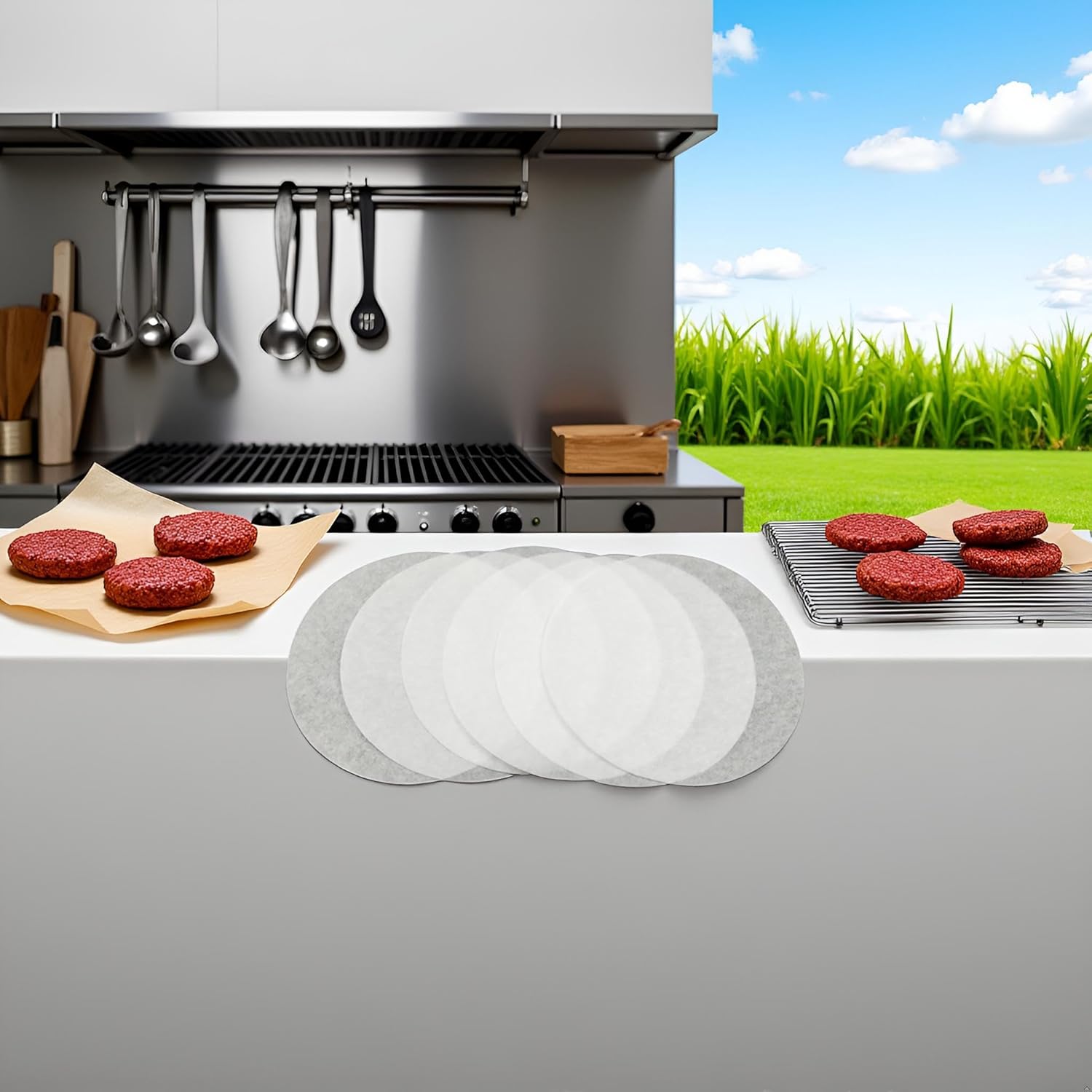 100Pcs Burger Patty Separator Sheets Press Wax Paper Hamburger Non-stick Round Parchment for Ground Beef Freezing Candy Wrappers Oven Microwave 12cm Baking Tools and Accessories(ZS307)