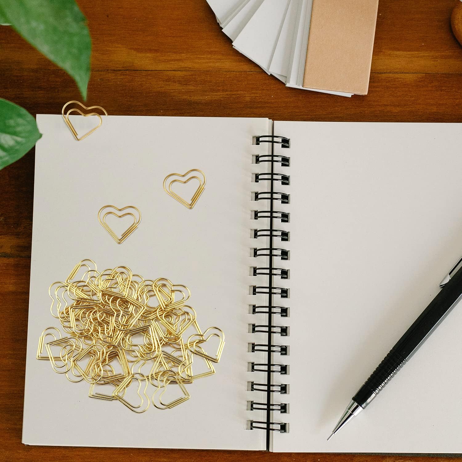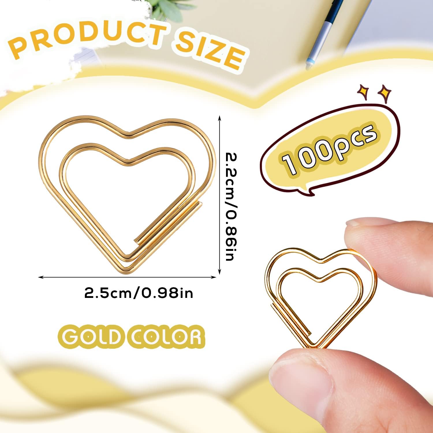 100pcs Mini Gold Heart Paper Clips, Small Cute Love Shaped Stainless Steel Metal Bookmarks for Document Note Sorting, Wedding Decoration, Crafts, Kids, Office Supplies