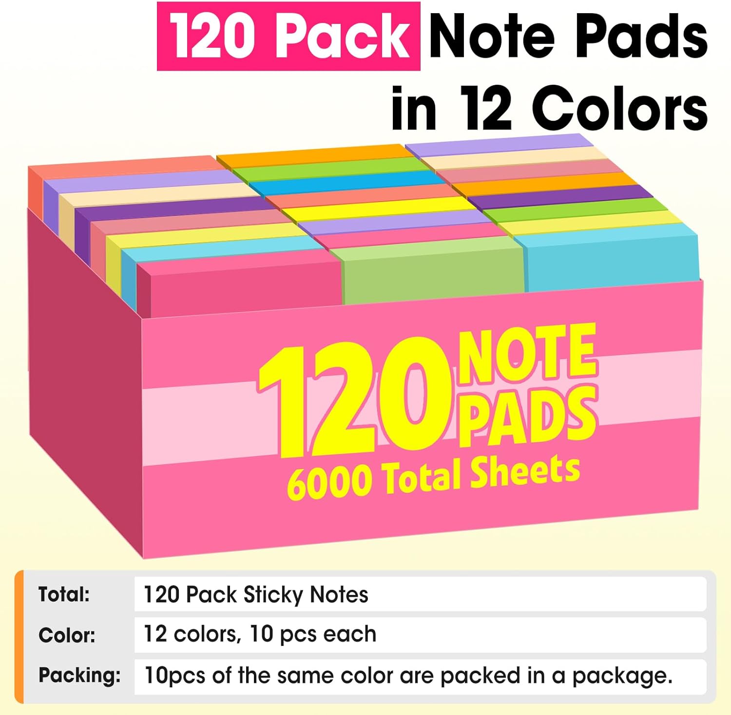 120 Pads Sticky Notes 3×3, Self-Stick Pads Bulk Bright Colors, School Supplies, Office Products, 50 Sheet/Pad