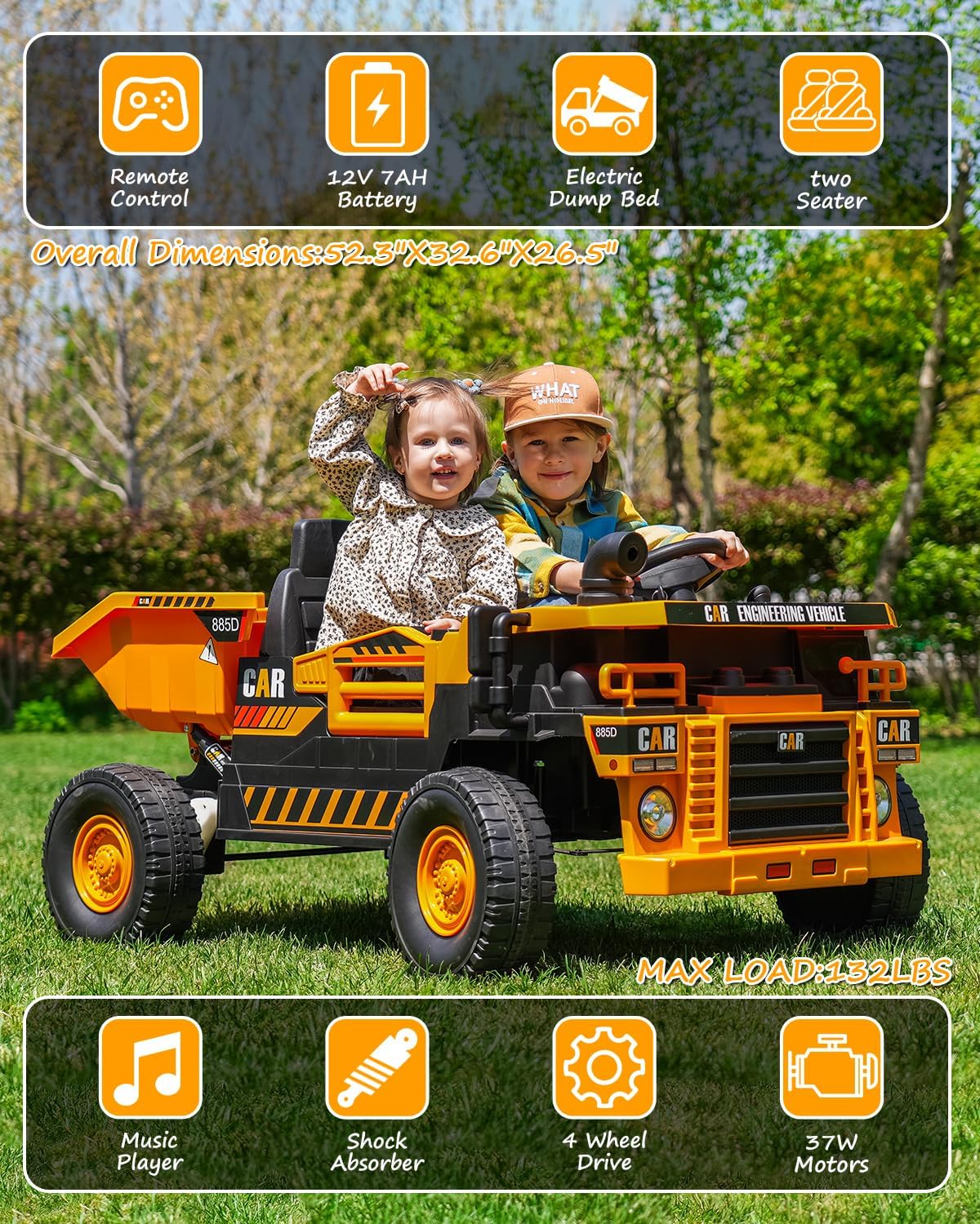 Note: 12 v ride on toys for kids 3-8 ,Ride on dump truck to be assembled.