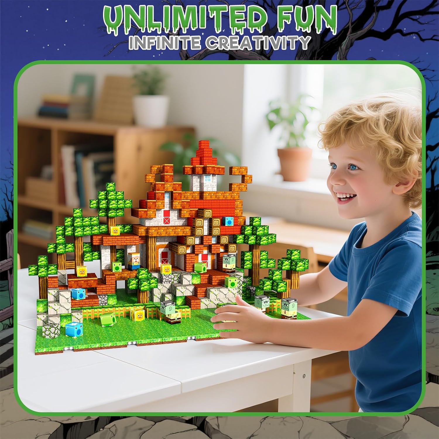 【Expandable Building System with 4 magnetic Base Plates】Boost creativity with 4 interlocking magnetic base plates -each equivalent to 25 magnetic blocks, enabling 4X larger structures and multi-level designs compared to standard sets – perfect for castles, bridges, and collaborative play