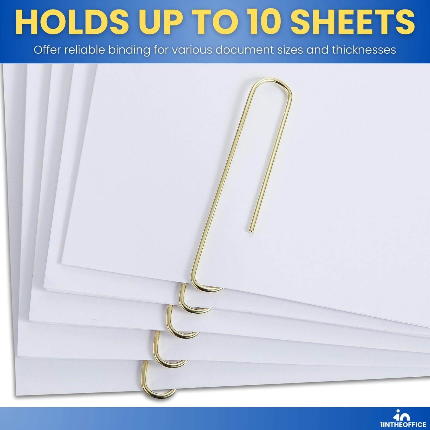 1InTheOffice Jumbo Paper Clips, Gold, Smooth, 100/Pack