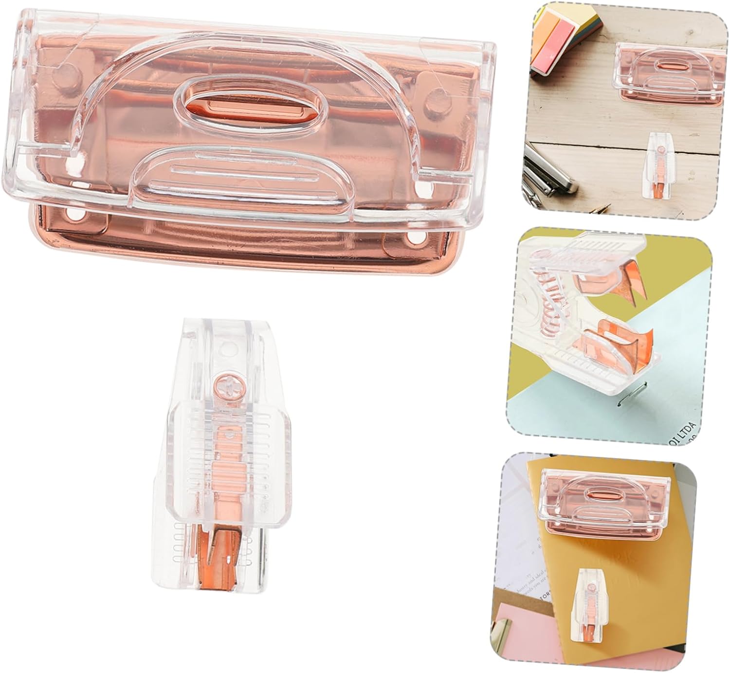 1set Cardboard Two Hole Puncher Stapler Remover Portable Office Tool Transparent Efficient Hole Punching Secure Stapling Stylish Design for Home and Office Use
