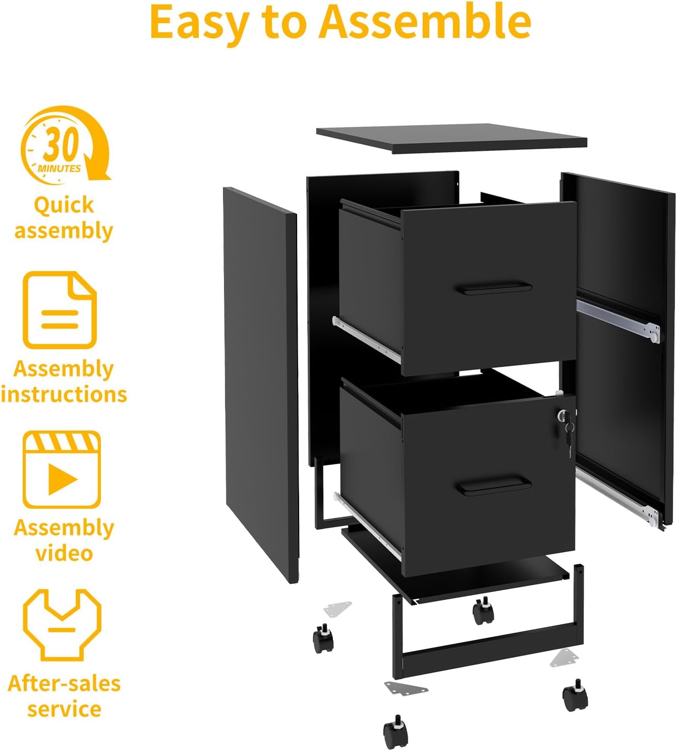 【Anti-tipping Design】The 2 drawers office file cabinet is equipped with 4 x 360 ° rotating casters, among which two casters can be locked. You can easily move the black filing cabinets for home office to any place. You can lock two of the casters to make the filing cabinet under table more stable and prevent it from moving. The rolling file cabinet is equipped with 4 foot pads. If you don’t need to move the filing cabinet with lock, you can easily install a soundproof pad to achieve a more stable structure.