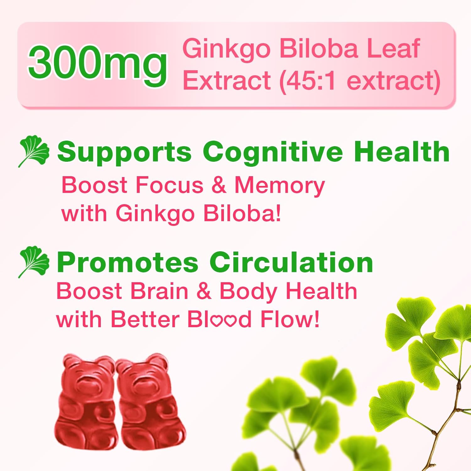 Ginkgo Biloba Complex with Ginseng:Each serving of our ginkgo biloba gummies contains a potent blend of ginkgo biloba extract, panax ginseng, and vitamin C to support brain health, focus, and overall cognitive function