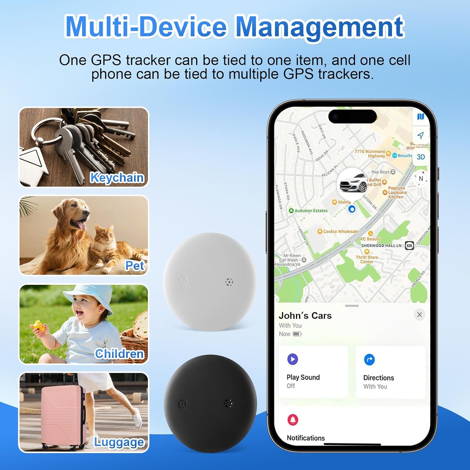 2 Pack Mini GPS Tracker for Vehicles Work with Find My (iOS Only), Real-Time Global Coverage Locator, Hidden Tracking for Person/Pets, Long Standby, No Monthly Fee/No SIM Card Required/No Subscription