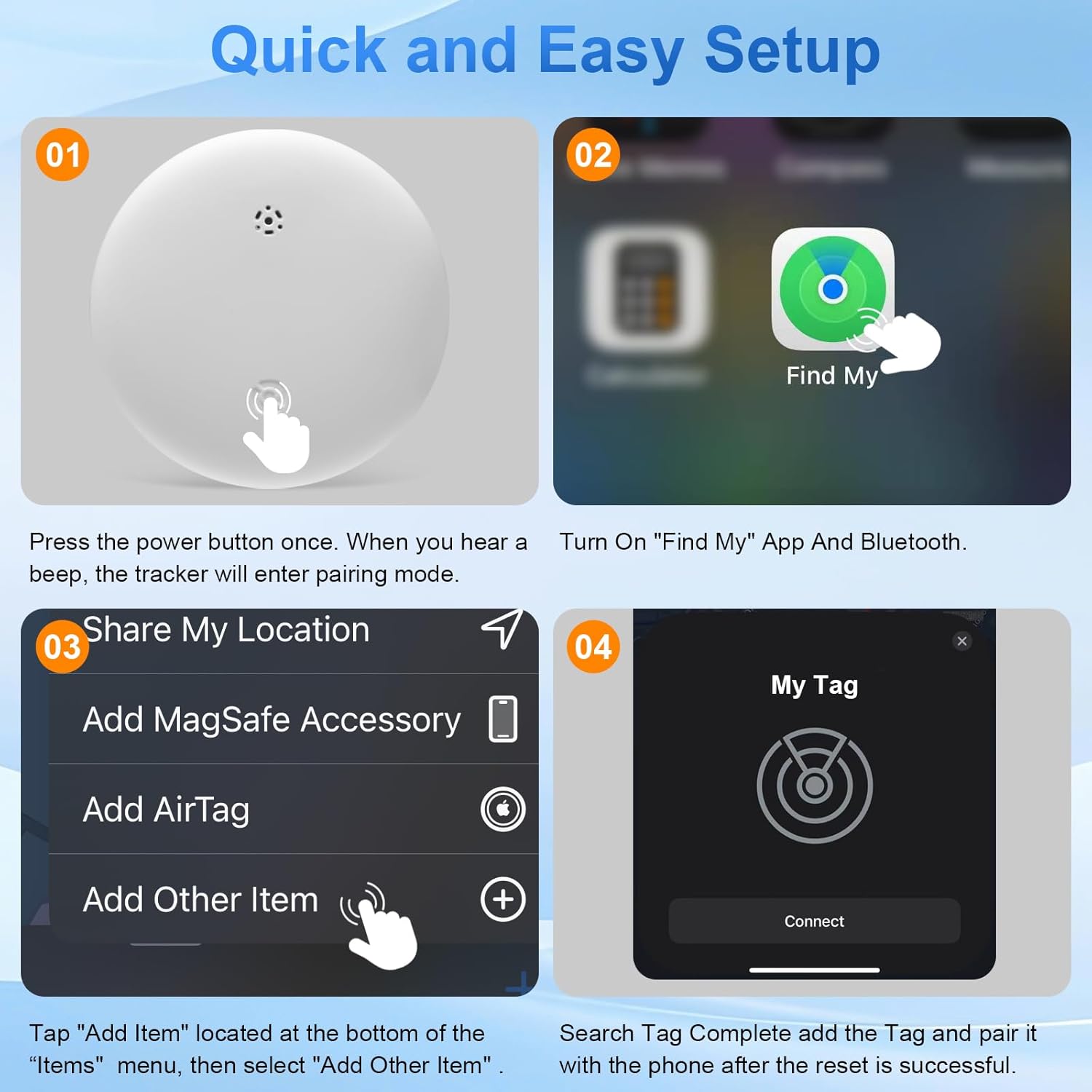 【No-Subscription Car Tracker】This mini GPS tracker for vehicles requires no SIM card, no subscription, and no monthly fees. It simply works with Find My (iOS only) to use (not works with Android). Easy to use and portable.