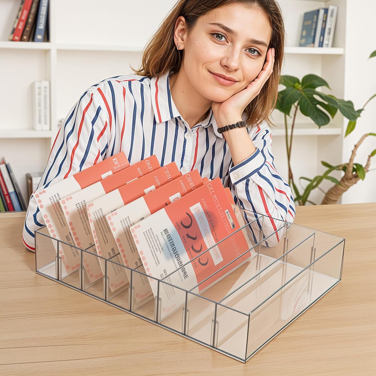 2 Packs Mail Organizer Plastic Cash Tray for Desk – 8 Slots File Organizer Clear Desktop Bill Divider Holder for Paper Envelope Document Book Money Eyeshadow Makeup Palette
