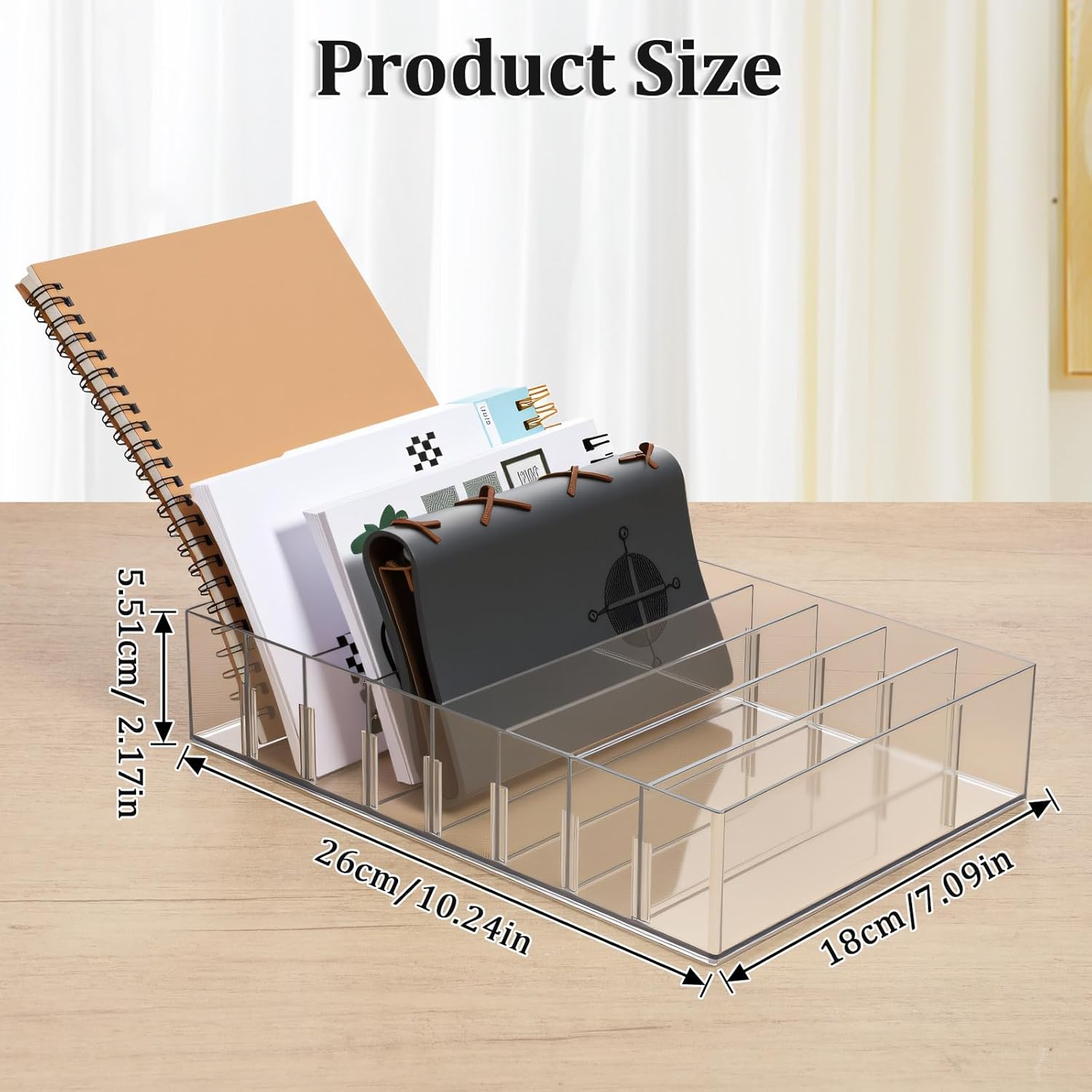 Easy to use:The size of the cash storage rack is 10.24 x 7.09 x 2.17 inches/26 x 18 x 5.5 cm. Organizer with 8 separate compartments and removable divider panels keep your cash organized and within easy reach. The top opening design makes it very convenient for you to take and store stamps, letters and so on.