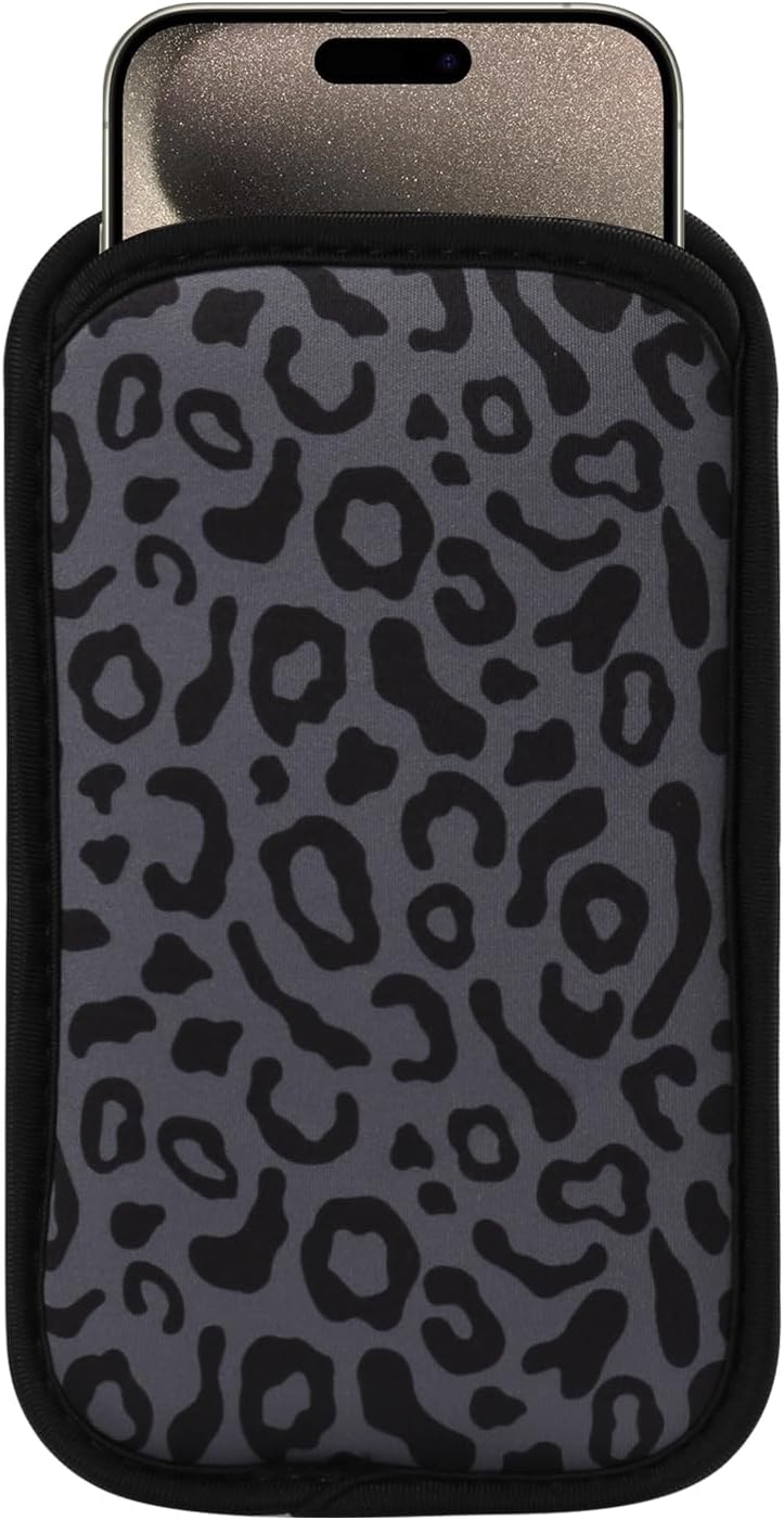 2 PCs Neoprene Cell Phone Sleeve Phone Pouch Compatible for Apple iPhone 16 Pro Max 16 Plus Galaxy S25 Ultra S25+ S24 FE A53 A32 A03s Pixel 9 Pro XL OnePlus 13 13R (Medium, Grey Leopard)