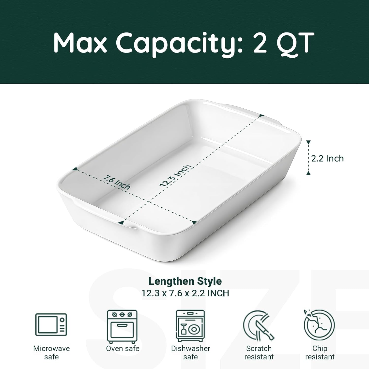 2 QT Small Ceramic Baking Dish, White Casserole Dish with Roasting Racks, Lasagna Pan for Oven, Ceramic Baking Pan, Kitchen Decor, Microwave Oven Safe, Dinner, Wedding(7.6″ x 12.3″)