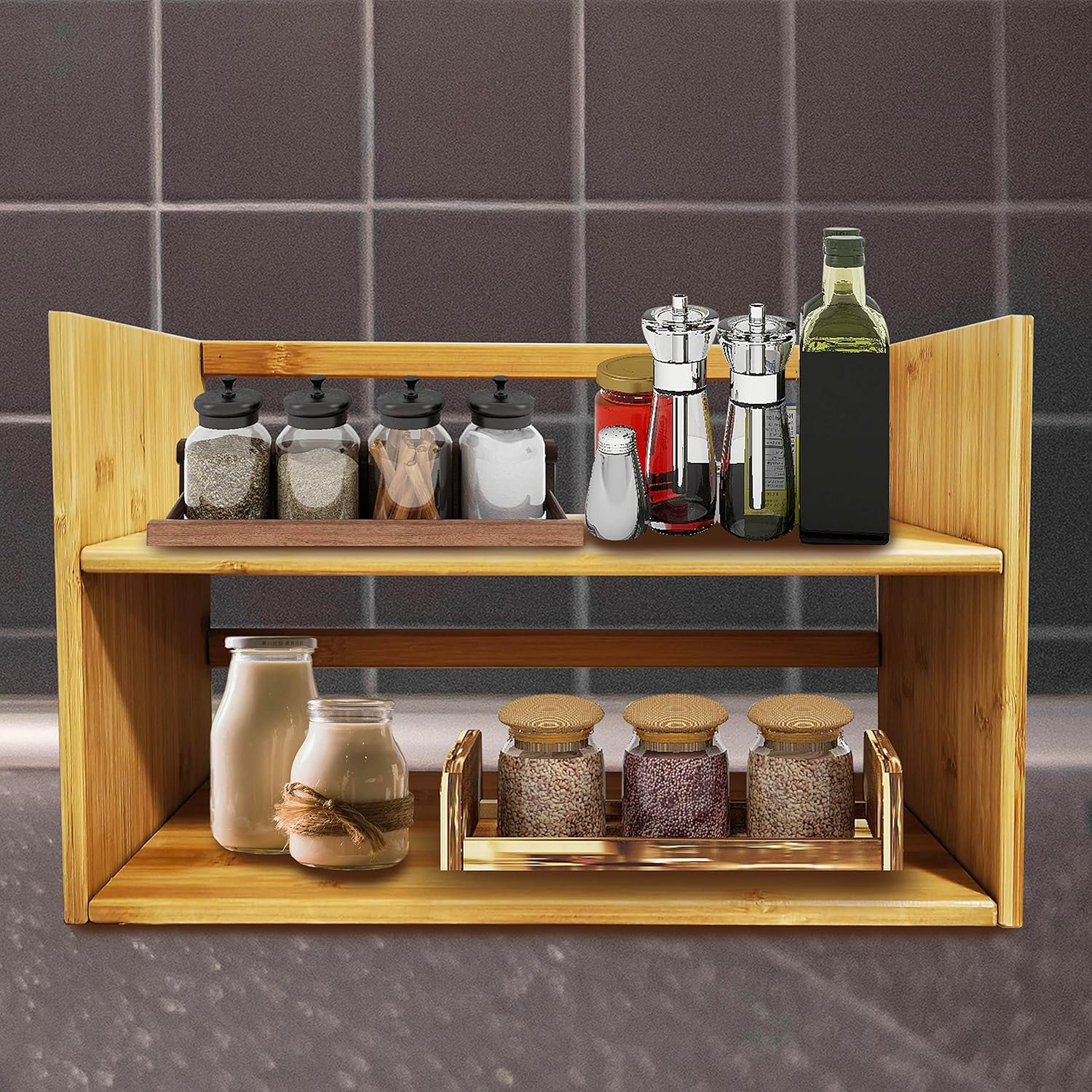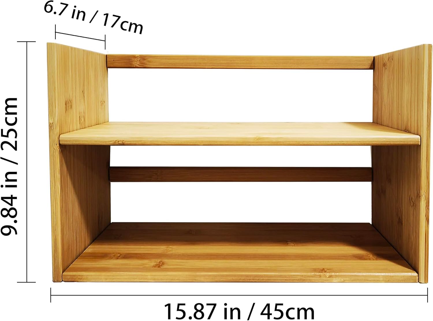 2-Tier Bamboo Desktop Shelf Organizer 16″ x 10″ Wooden Desk Bookshelf Office Supplies Storage Rack for Book, Files, Accessories