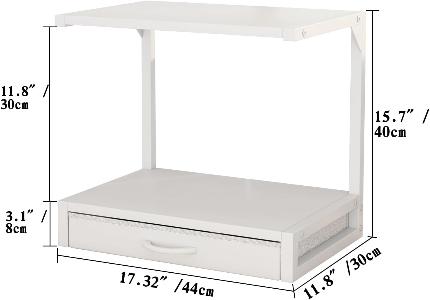 2-Tier Desktop Printer Stand and Storage Shelf, Home Office Desk with Fabric Drawer, Organizer for 3D Printer, Fax Machine, Scanner, Compact Size 17.3″x11.8″ Printer Stand for Desk, White