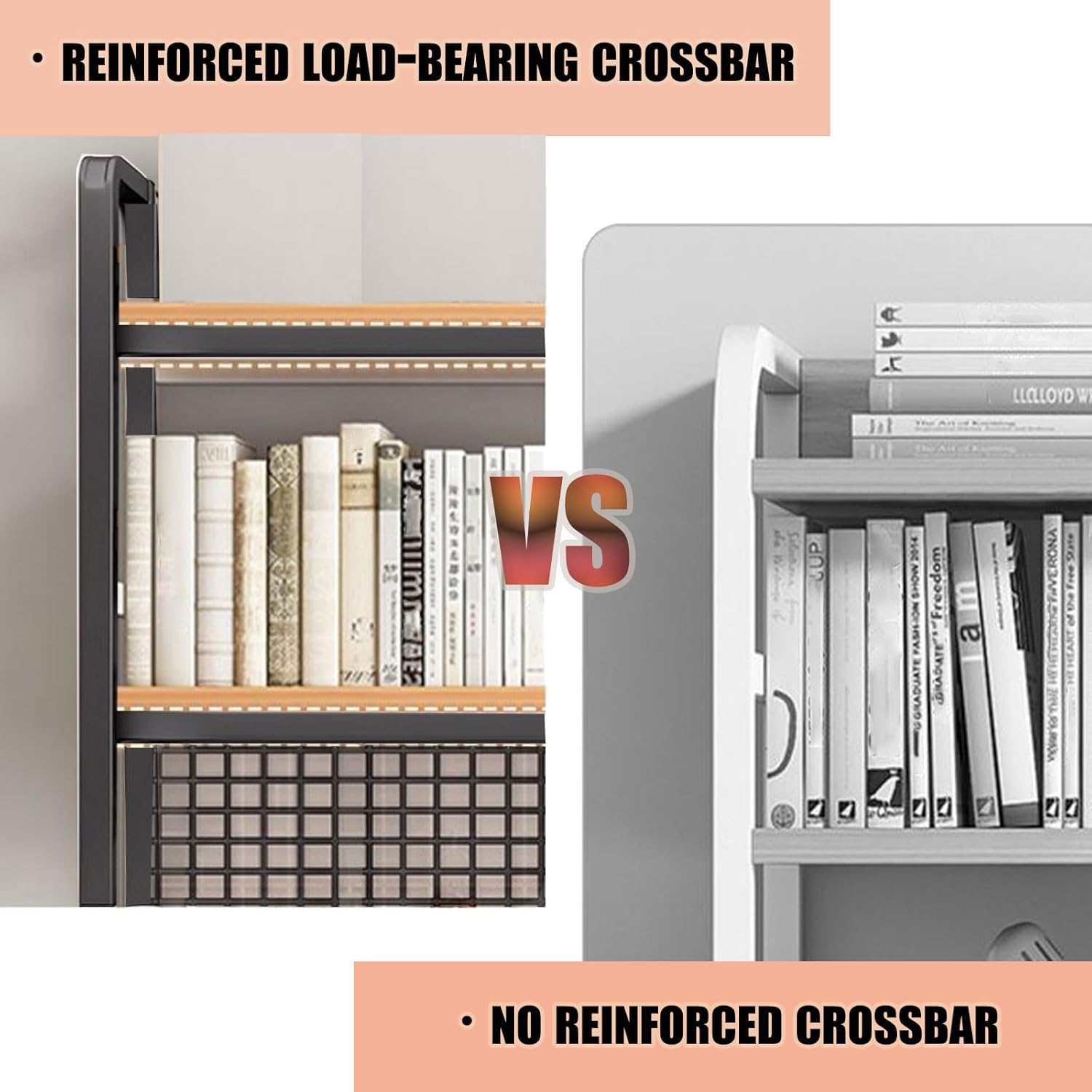 EXCELLENT CRAFTSMANSHIP: This desktop bookshelf is made of 15mm reinforced steel frame and high-quality density board material, the structure is solid and not easy to shake, providing you with good stability and load-bearing capacity. The rounded corners are smooth to the touch to prevent you from bumping and getting hurt.