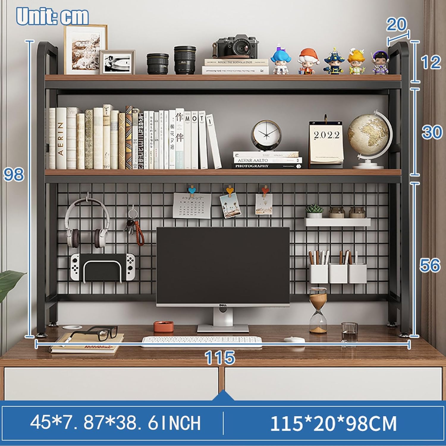 EASY TO INSTALL: This desk hutch comes with shelves, panels, grids, accessories, installation gadgets and instructions, it is a breeze to assemble and can be completed. The bookshelf is 45inch/115cm in length, 7.87inch/20cm in width and 38.6inch/98cm in height, if you have any questions, you can contact us at any time, we will try our best to serve you within 24 hours.