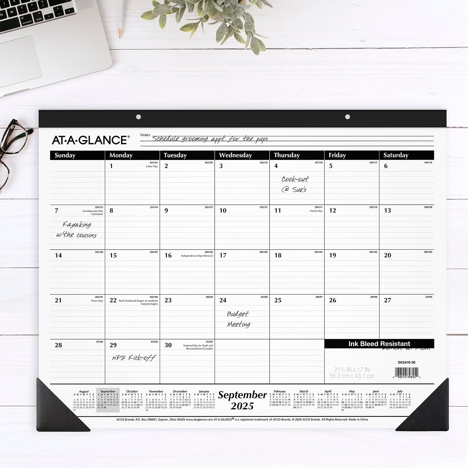 2025-2026 AT-A-GLANCE 21.75″ x 17″ Academic Monthly Desk Pad Calendar, White/Black (SK2416-00-26)