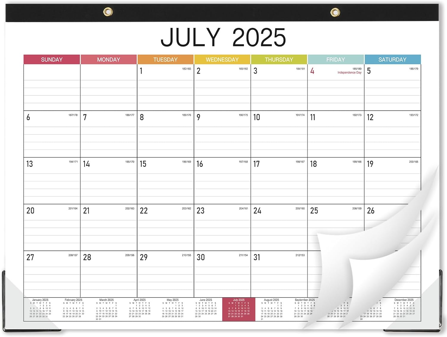 18 months from Jul. 2025 to Dec. 2026 are covered.Premium paper is ink-proof and avoids feathering.Can be used as a desk calendar or a wall calendarPages size: 17″ x 12″.Pages color: 6 gradient colors are very distinctive