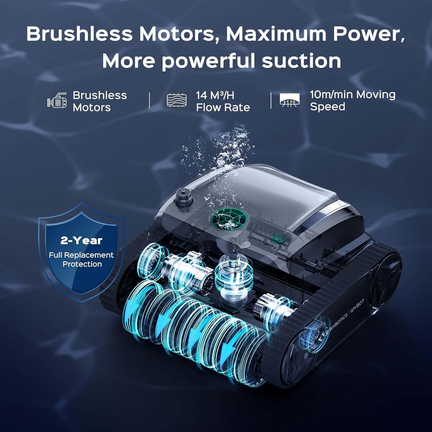 Powerful Suction: Equipped with brushless motor for strong suction and exceptional cleaning power, it effectively captures debris, dirt, and leaves from the pool floor and walls.
