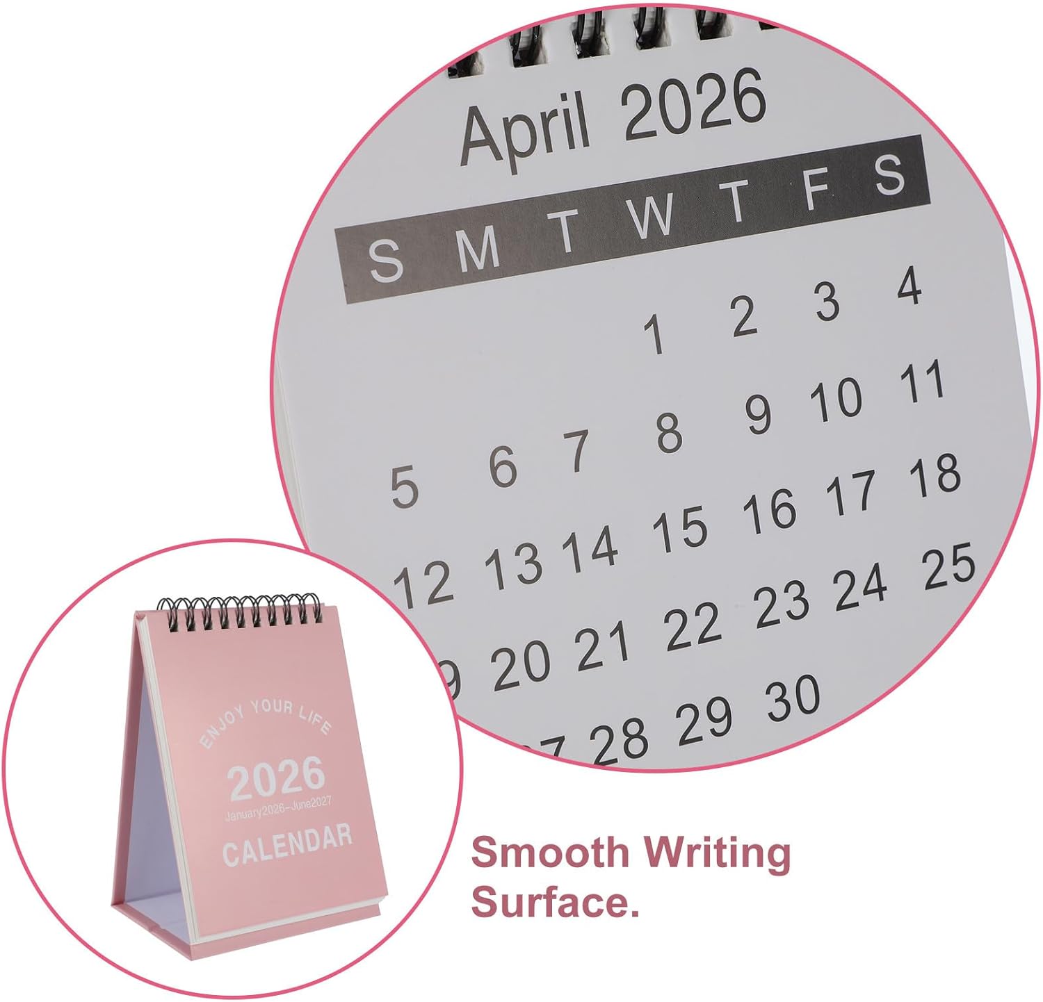 2026-2027 Mini Desk Calendar: 2026 Monthly Standing Desk Calendar 18-month Planner for Home School Office, Pink