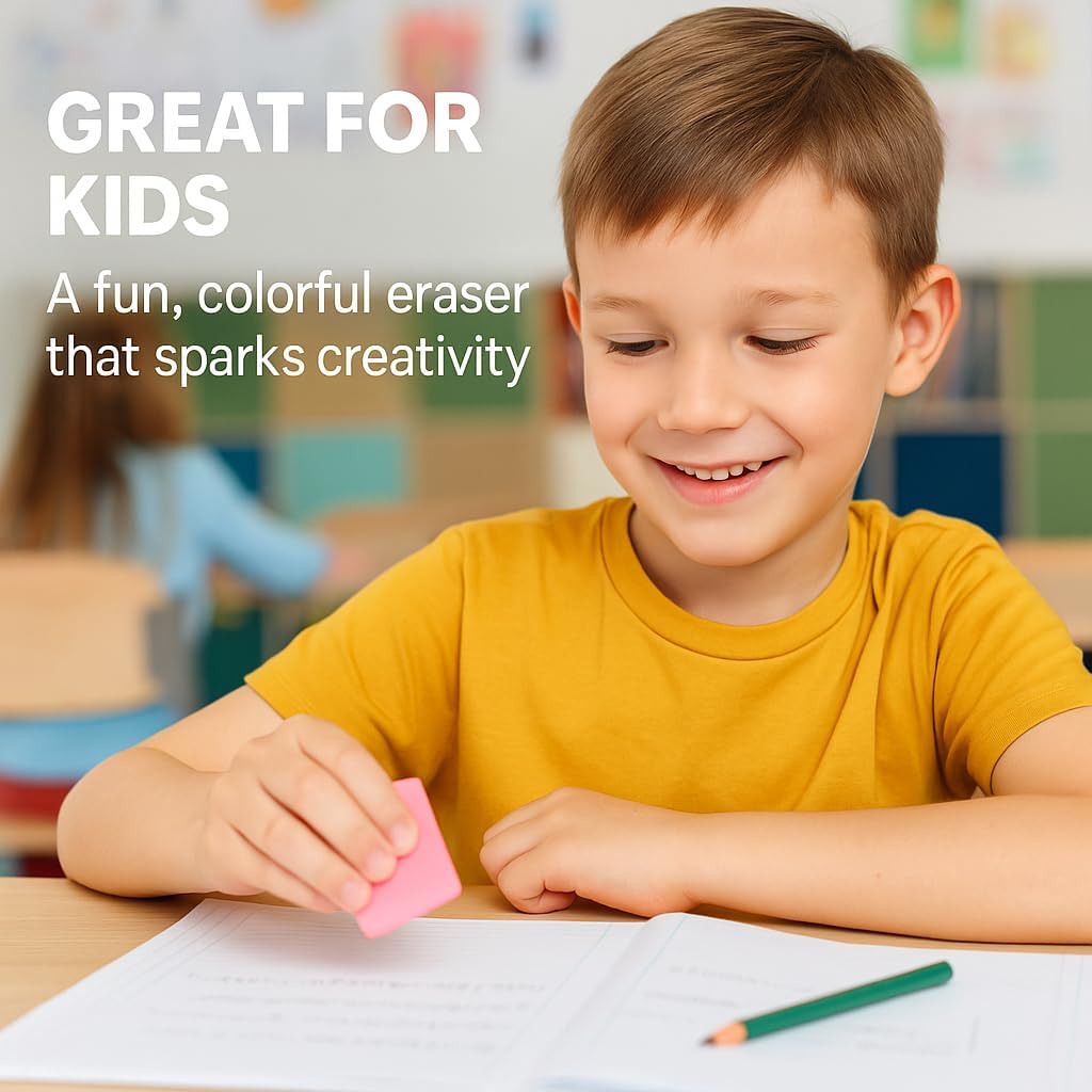 No Color Transfer: Despite their vibrant exteriors, these erasers leave no color behind, ensuring that your artistic work remains pristine. This feature is particularly beneficial for artists working with lighter or sensitive materials.