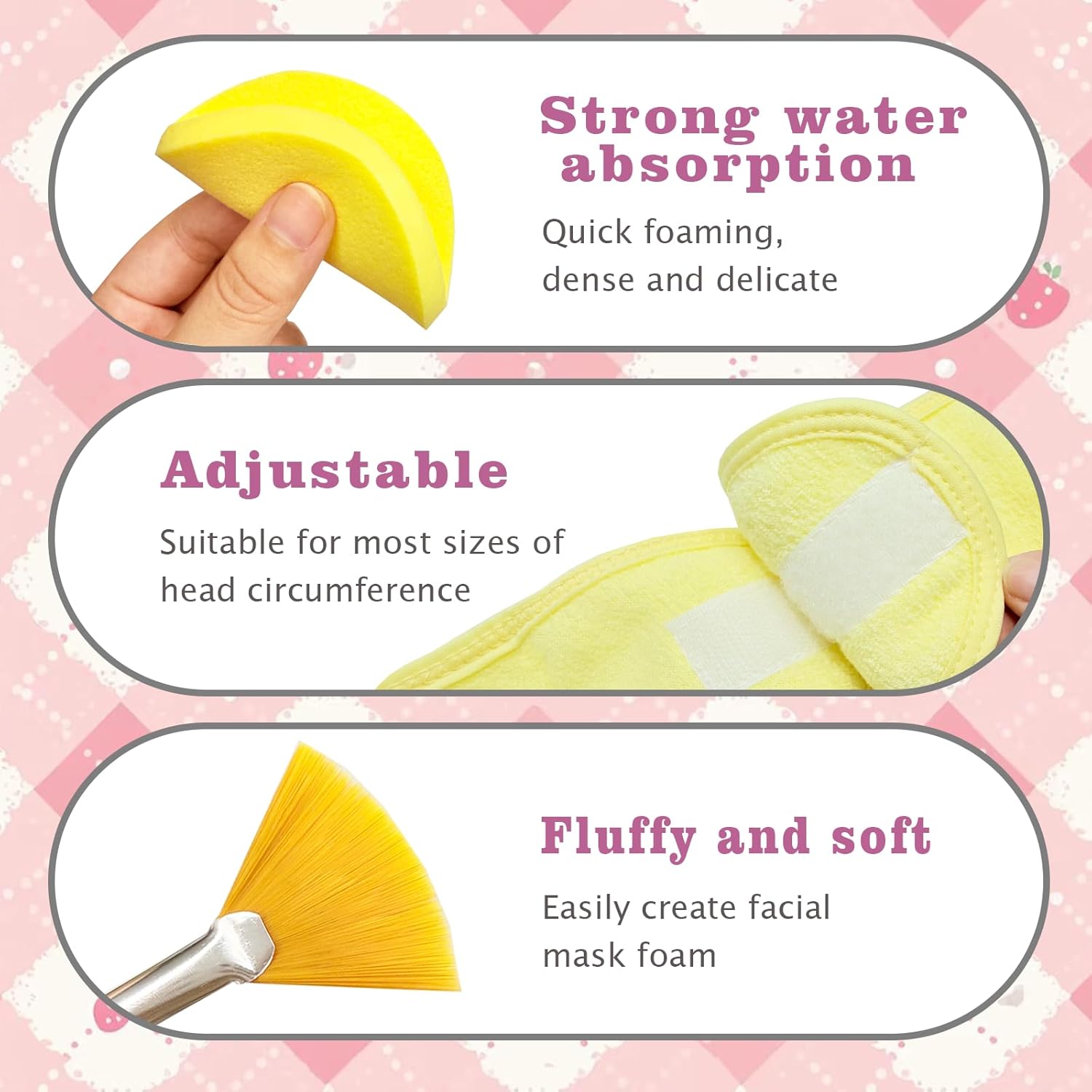 Esthetician supplies for facials: You will get a pack of 24-piece facial care tools, including 3 gold mixing bowls, 3 facial fan brushes, 3 white face mask applicator brush, 1 gold three-grid rectangle dish, 1 gold stainless steel small tray and 12 pieces of yellow compressed sponge strips; You can choose different styles according to your needs, which is easy to distinguish and replace, reusable, very suitable for salons and homes, enough to meet your daily use and sharing needs.