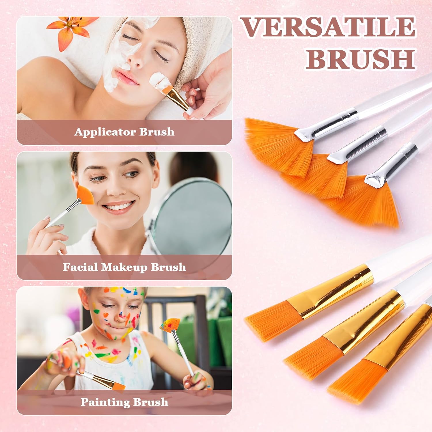 Facial Supplies Set: Our facial supplies set includes 6 rose gold facial bowls (3.26×1.1 inch), 6 facial headbands(25×3.12 inch), 6 clear handle fan brushes(5.83×1.96 inch) and 6 flat brushes for face mask(6.6×0.78 inch). This is the perfect combination of facial makeup and treatment
