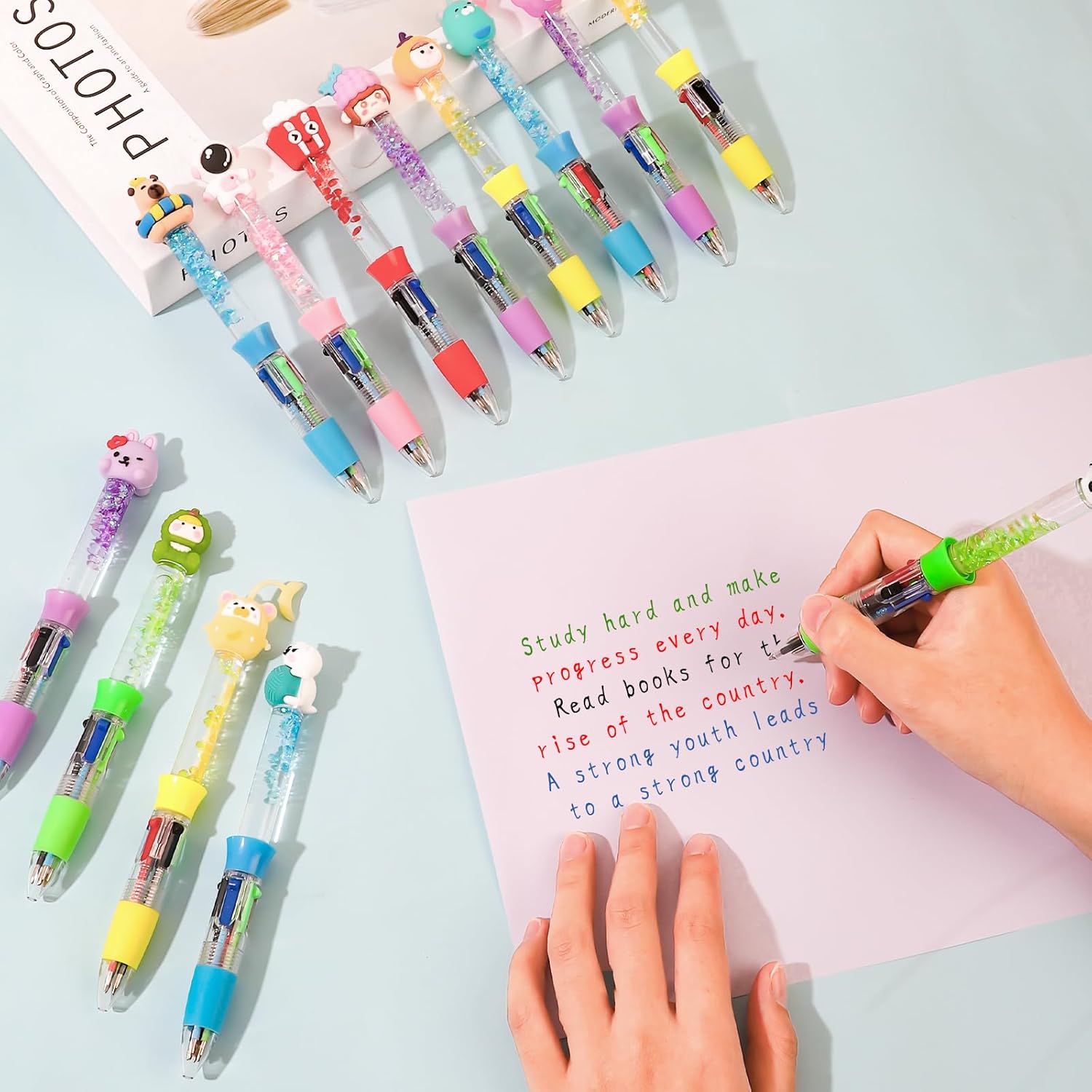 Cute Multicolor Pen in One – The cute 3D toppers add a more fun to writing, making these pens a favorite for students, teachers, and pen lovers