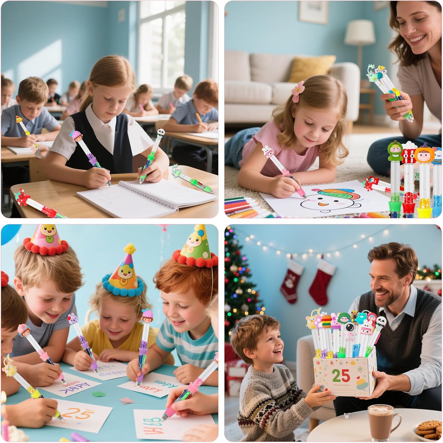 25PCS Multicolor Pens in One 4-in-1 Cute Kawaii Fun Ballpoint Pen for Kids Classroom Birthday Gifts Back to School Gifts (25)