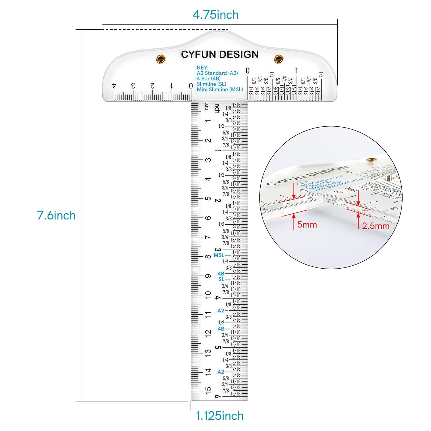 PACKAGE INCLUDES: 2 pieces T-Shape transparent rulers in one package, the size of this ruler is 7.6×1.25×4.75inch 5/2.5mm in thickness,measures range is 6 inches/ 15 cm