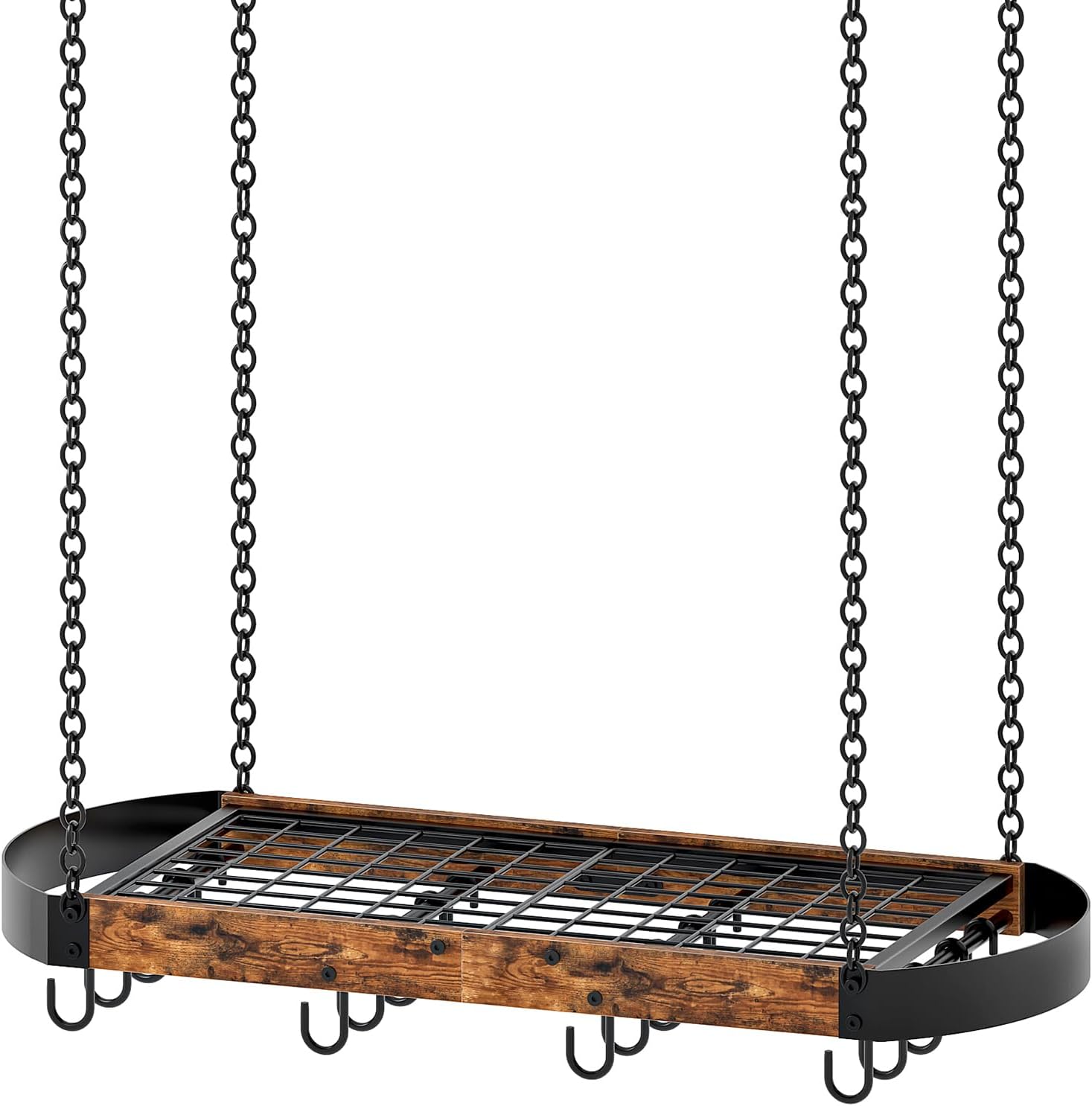 Sturdily Built: The pot hanger is secured by four chains, ensuring a stable structure and reliable support for up to 44 pounds. This stability keeps pots and pans steady, preventing shaking during use for a safe experience