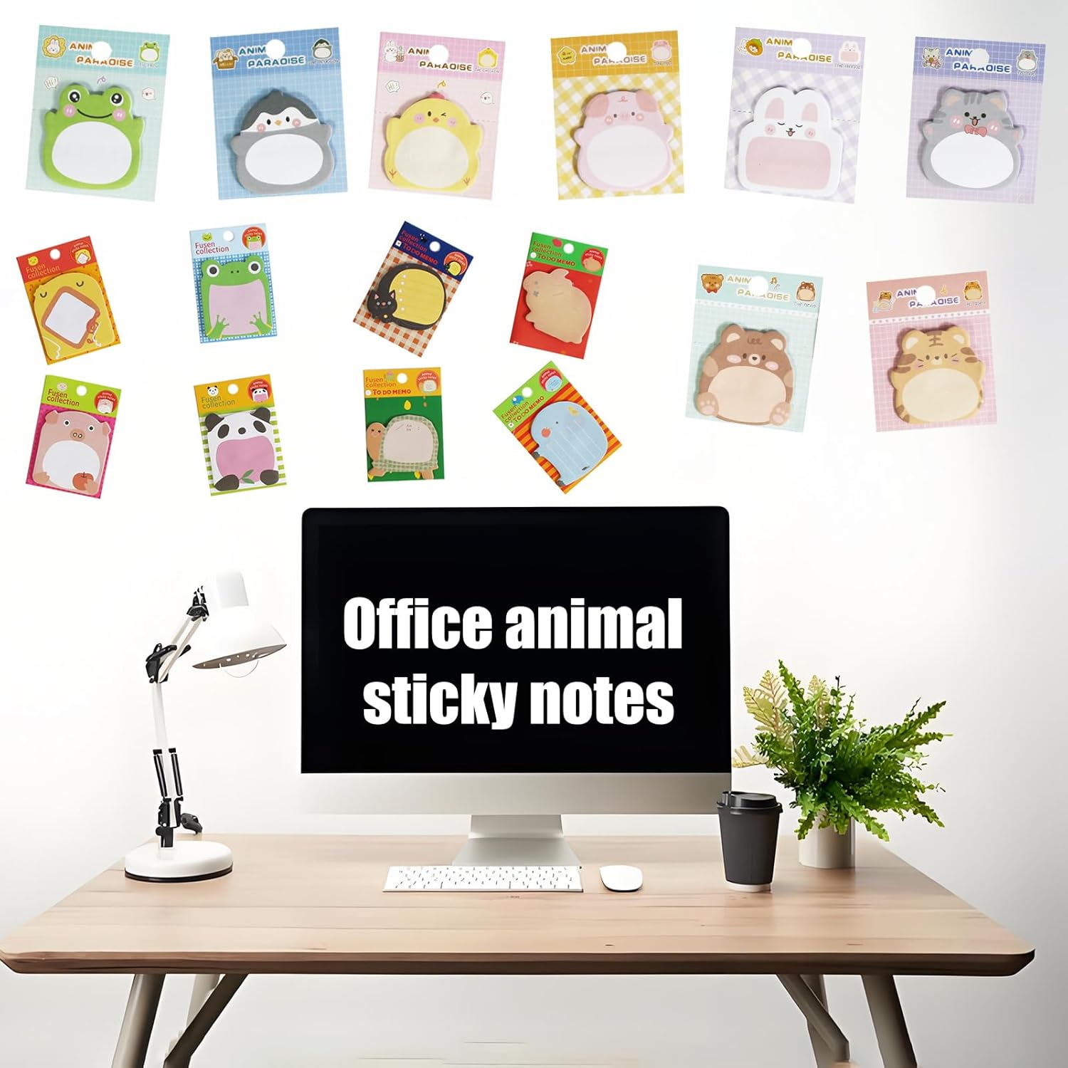 32 Pads(640 Sheets) Sticky Notes package: You will get 32 pads of sticky notes with 16 different animal patterns, 2 pads for each pattern, 20 sheets for each pad, a total of 640 sheets,enough quantity can meet your daily need.