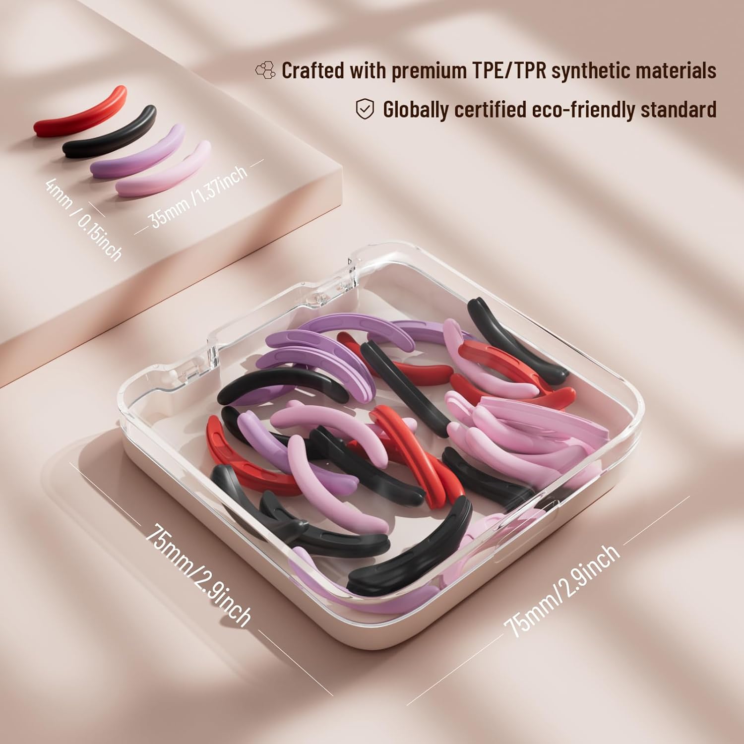 4 COLOR CHOICES – COMPLEMENT YOUR STYLE: Discover eye lash curler rubber refills in four sophisticated shades: classic black, soft pink, vibrant purple, and bold red. Each color is designed to seamlessly match your eyelash curler, offering a touch of elegance and charm. These refills not only provide a fresh look but also elevate your mood, making every use a delightful experience.