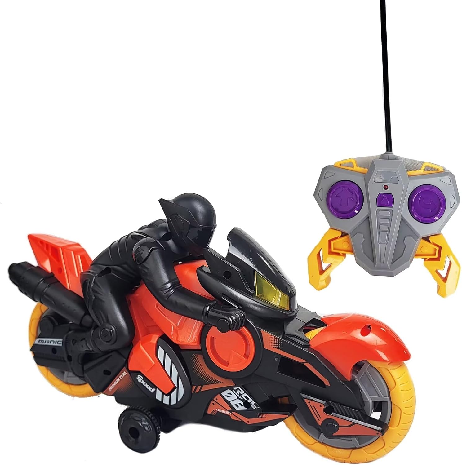 【Easy-to-Use Remote Control】: The intuitive remote control is designed with kids in mind, making it simple for young racers to master the art of controlling this thrilling RC motorcycle. Left Button for Forward and Right Button for 360 Degree Spinning.