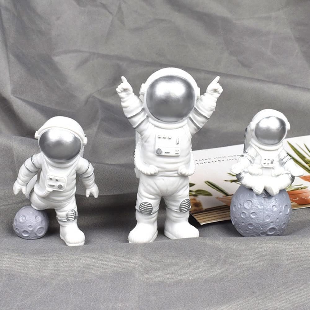 3Pcs Astronaut Figurines Cake Topper Outer Space Cake Decoration Spaceman Model Display Miniature Astronaut Action Figure Statue for Kids Party Gift Decor