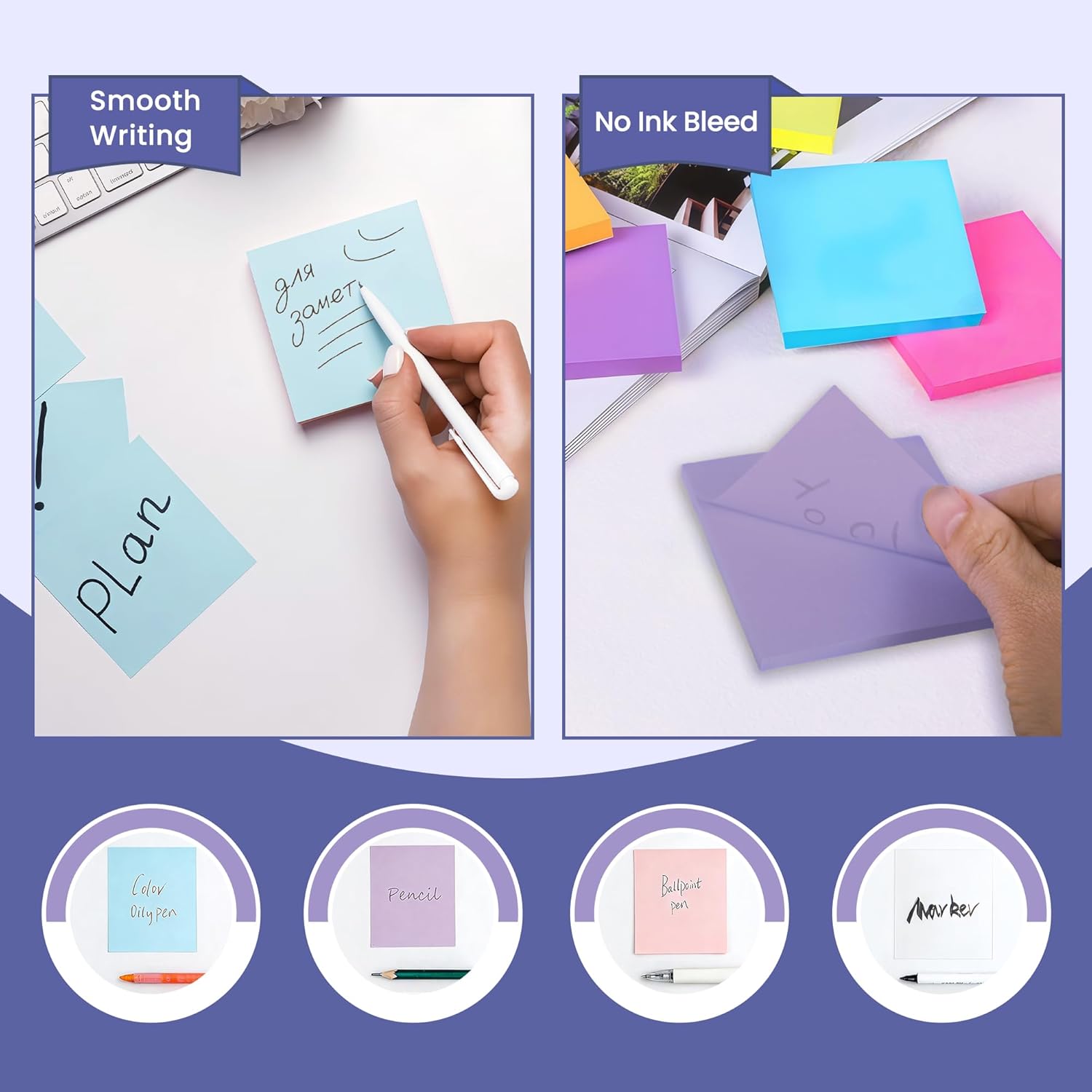 Strong Adhesion: You can stick and restick these sticky notes anywhere.This self-stick note pad sticks securely and removes cleanly without residue.