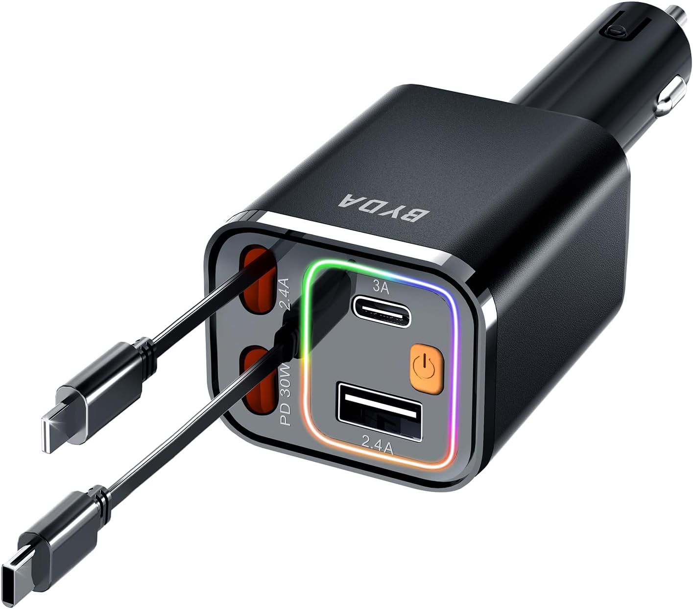 【What You Get】 Byda Retractable Car Charger (4-In-1 Ports With Dual Built-In Retractable Cable), An 18-Month Warranty, And Our Friendly Customer Support