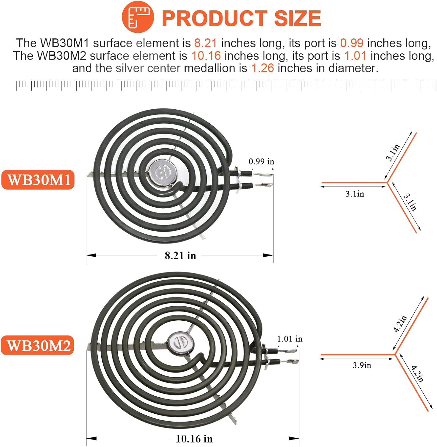 ✅【𝟰 𝗬𝗘𝗔𝗥𝗦 𝗪𝗔𝗥𝗥𝗔𝗡𝗧𝗬】: The 6-inch WB30M1 surface burner element and 8-inch WB30M2 surface burner element support 1460 days return and exchange.Our company attaches great importance to the shopping experience of each customer. Risk-free shopping, if you have any quality problem during warranty period, please contact customer service in time. We will try our best to solve the problem. Customer satisfaction is our tireless pursuit.