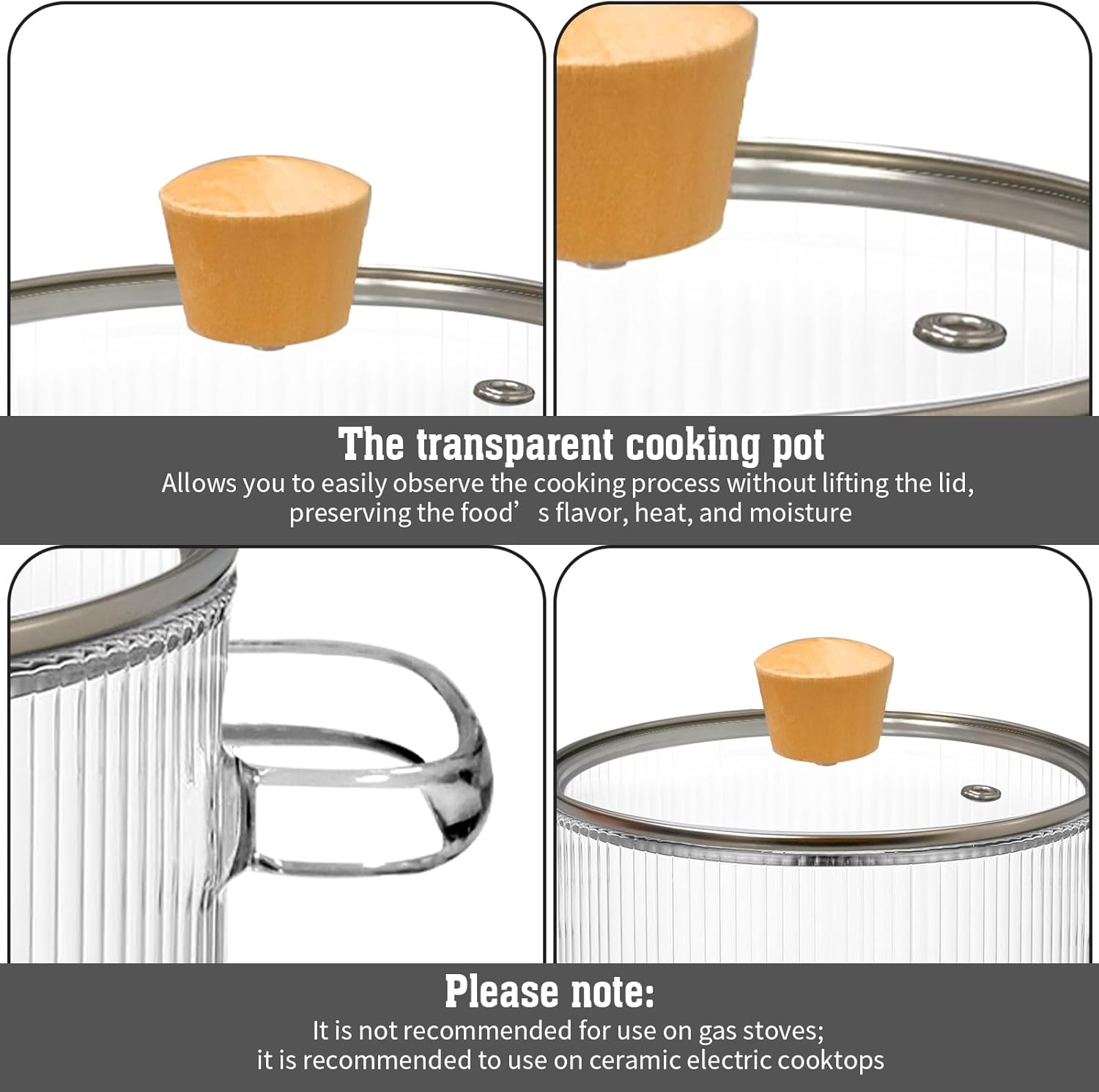 Heat Resistant and Sturdy: Crafted from borosilicate glass, known for its high resistance to heat and shock, these glass pots provide transparency and can withstand temperatures from 0-400°F, ensuring you get long-lasting and reliable performance with clear visibility during cooking
