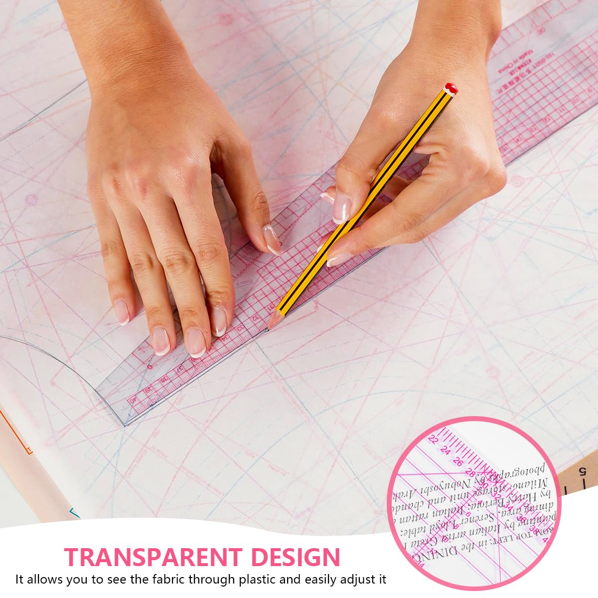 Precision Measurement: The ruler adopts both imperial and metric scales, with clear markings that can accurately measure up to 1/8 inch or 1 millimeter. Suitable for pattern making, drafting, drawing and altering