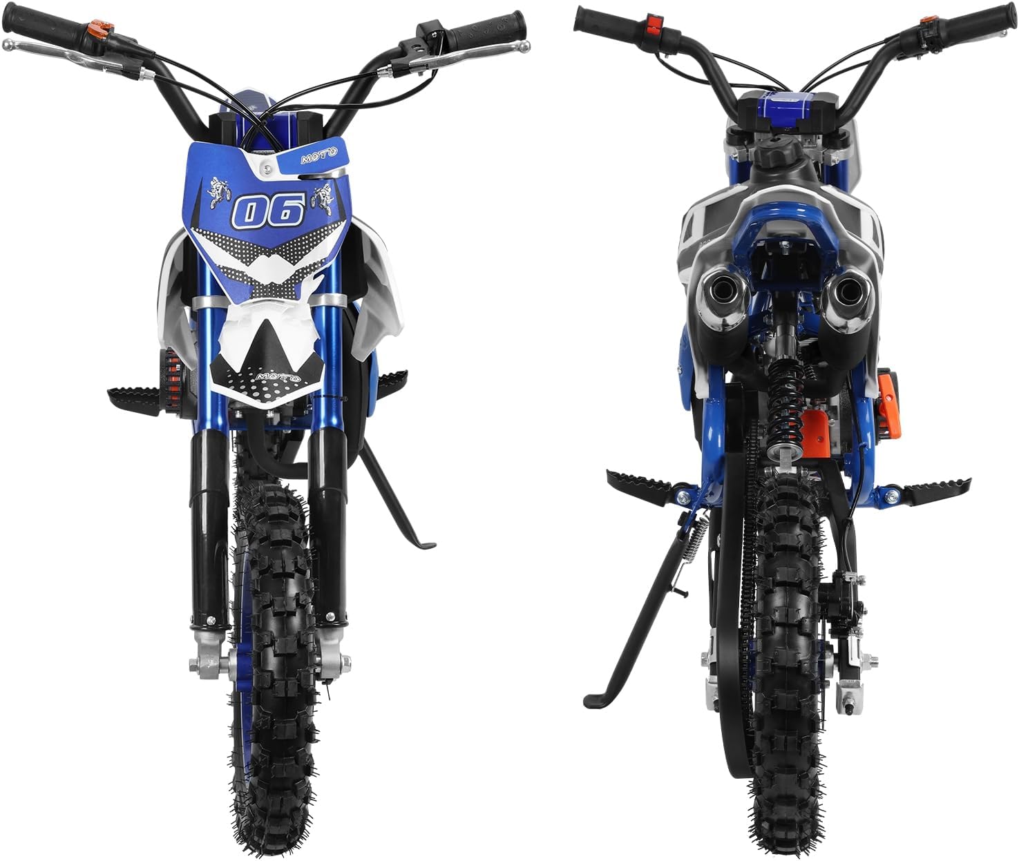 49cc 2-Stroke Kids Dirt Bike, Gas Power Motocross, Beach Off Road Mini Motorcycle, Children Pocket Motorbike with Improved Front Rear Disc Brakes Blue White