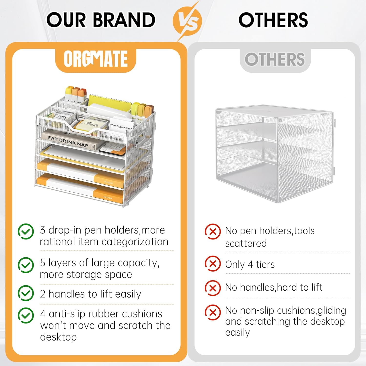 Quality Materials and Superb Craftsmanship-Featuring a lightweight and durable metal mesh construction with a sturdy frame and powder-coated finish that ensures the desktop file manager won’t bend or break when holding large quantities of paper, files and books, the file manager has a smooth finish that complements the office’s work decor