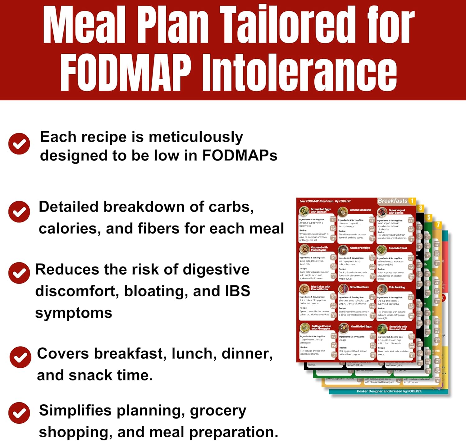 Includes Educational Poster: Gain valuable insights with a standalone poster that offers tips for managing FODMAP intolerance, step-by-step guidance on the low-FODMAP diet, and lifestyle adjustments to enhance your overall well-being.