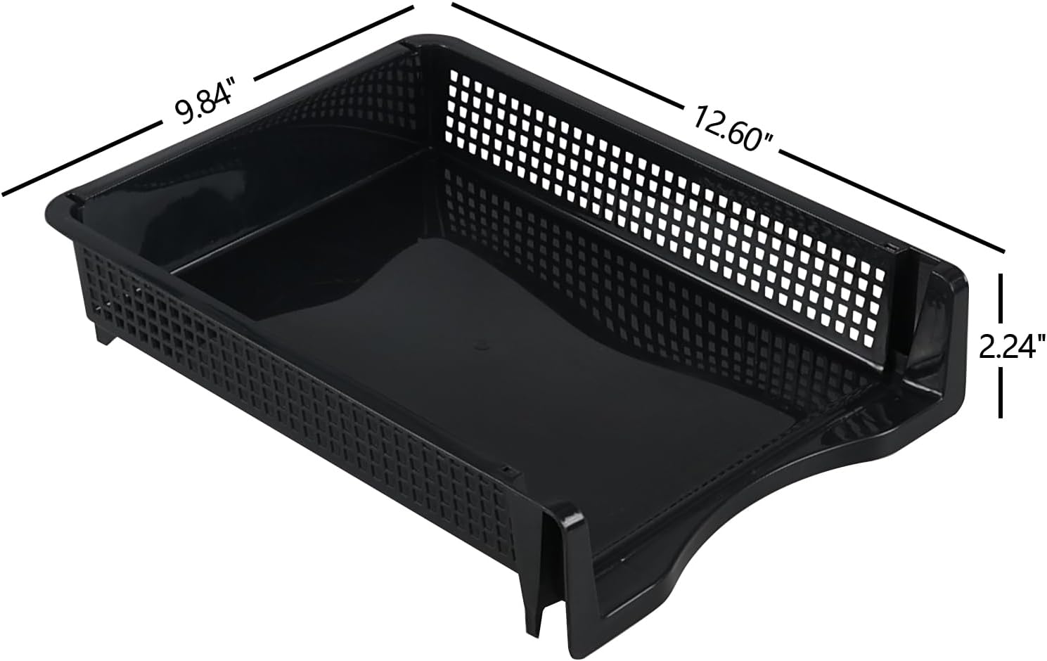6 Pack Stackable Letter Trays, Plastic File Organizer Tray, Desktop Document File Paper Organizer, Black