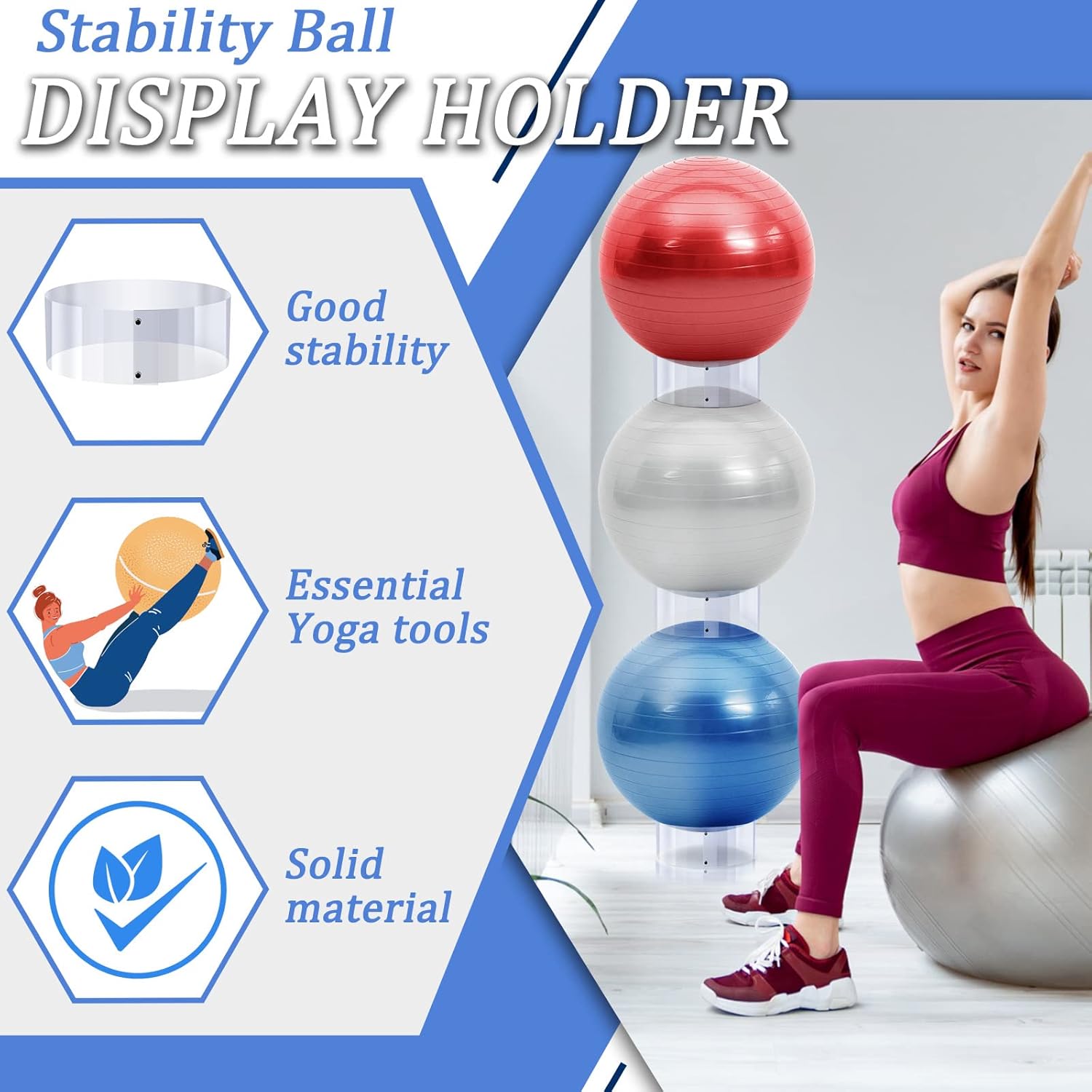 Practical and Versatile: these stability ball holders are suitable for different kinds of balls, such as stability balls, exercise balls, yoga balls and more, storing and display your balls in a good way, leaving your exercise balls a clean surface